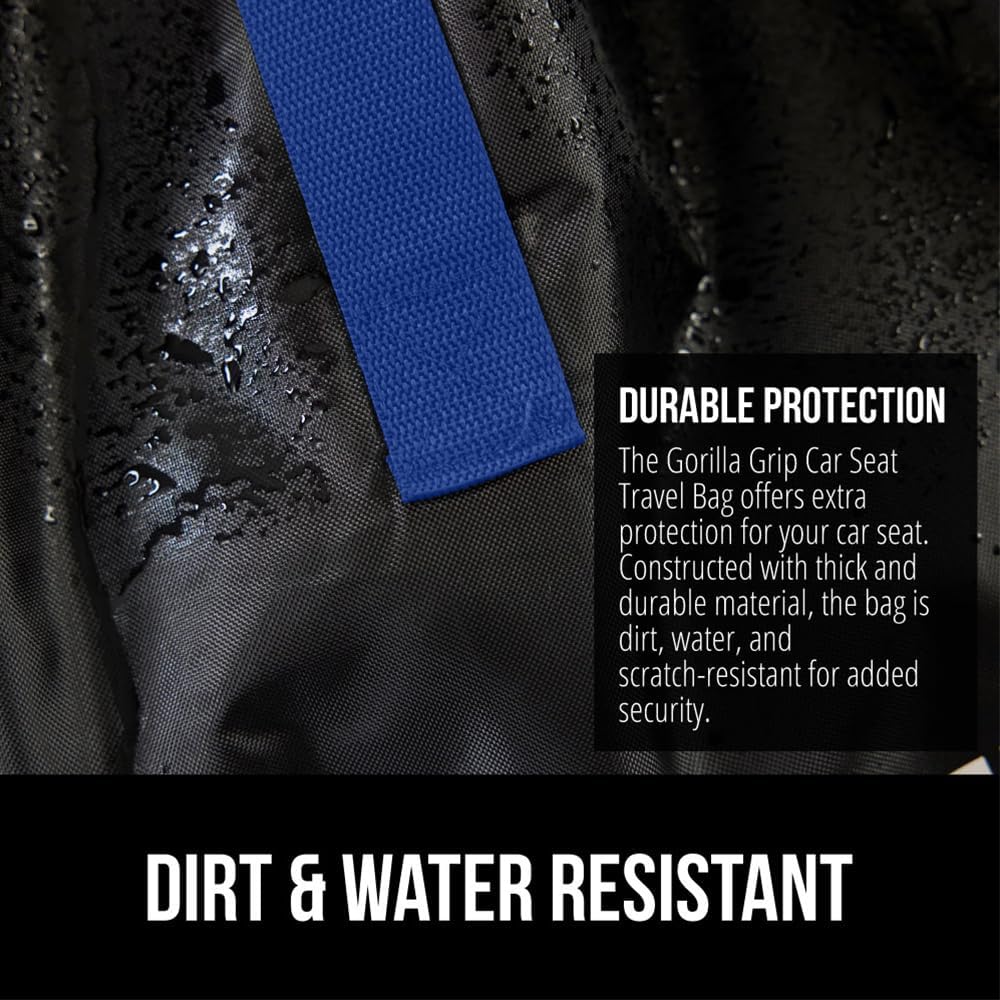 - DURABLE PROTECTION FOR YOUR CAR SEAT: a must for traveling, the Gorilla Grip Car Seat Travel Bag is designed to help protect your car seat while you travel; bag is water, tear and dirt resistant; features drawstring closure that tightly closes around the car seat, helping to protect from dirt, grime and moisture; bag is made of lightweight, yet durable material that can be machine washed