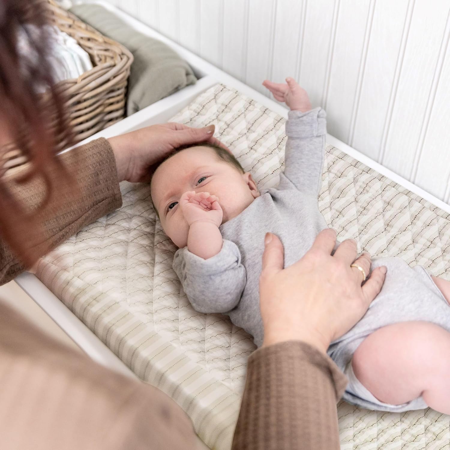 Crane Baby 100% Organic Cotton Change Pad Cover, Neutral Stripe Pattern for Boys, Girls, Unisex, Ultra-Soft GOTS Certified Cotton Cover, Perfect Registry Gift
