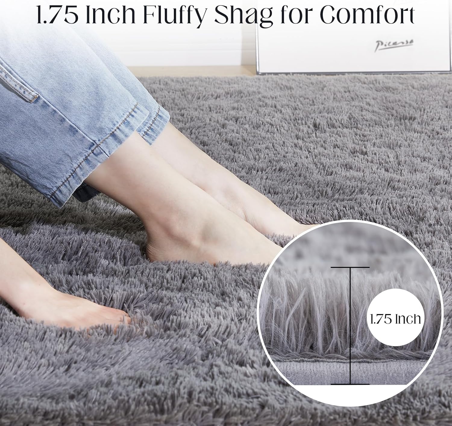 Ultra Soft Grey Rugs for Living Room, 5x7 Fluffy Plush Area Rugs for Bedroom, Non-Slip Floor Carpet for Kids Room, Bedside, Playroom, Corridor, Indoor Decor