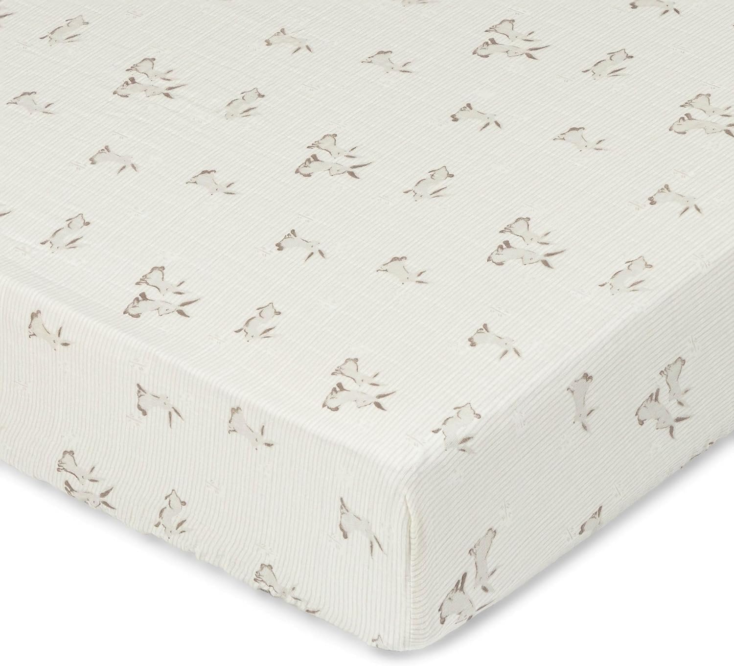 Crane Baby 100% Organic Cotton Gender Neutral Animal Nursery Bedding, Fitted Sheet, Soft Breathable GOTS Certified Cotton, Bunny Crib Sheet