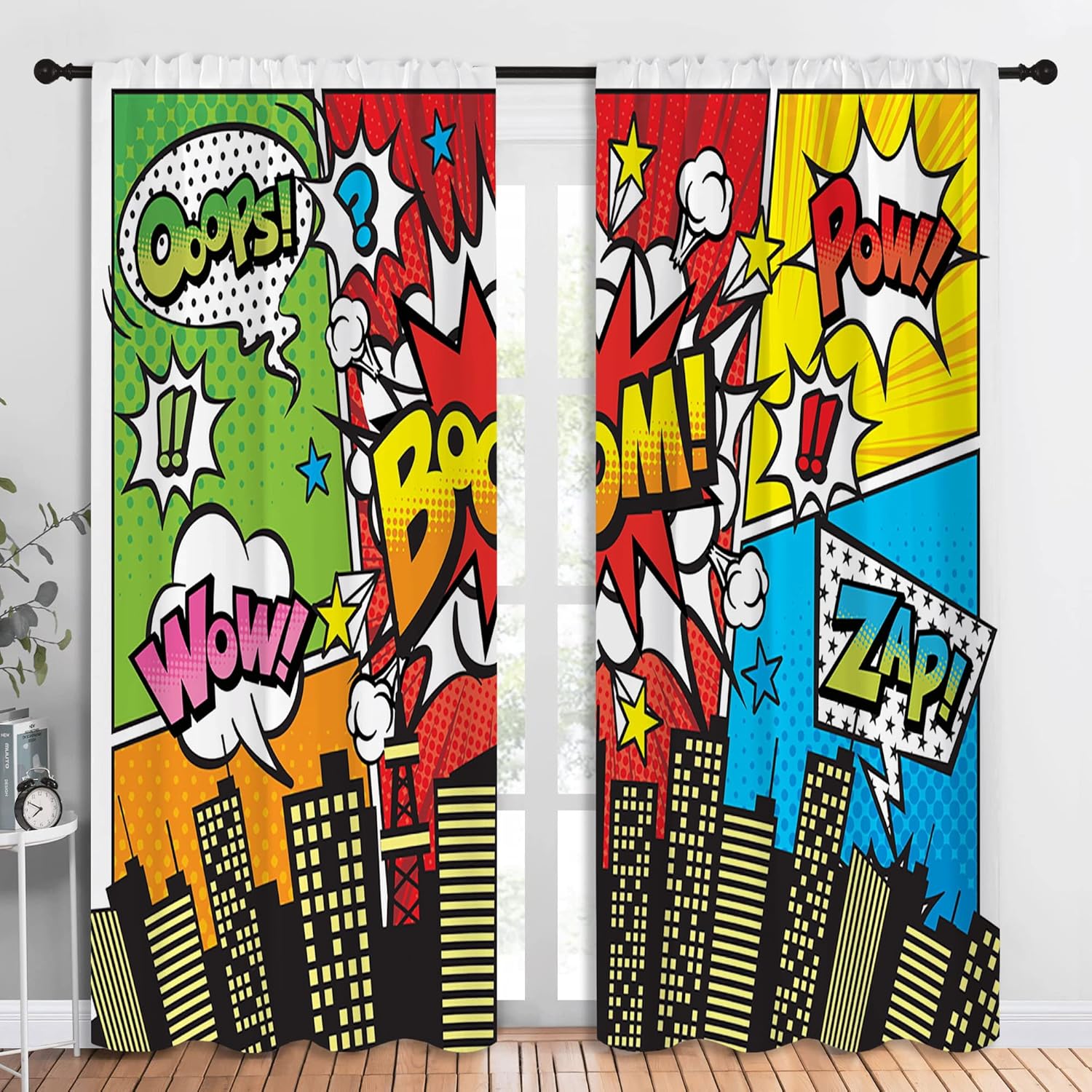 - ✿【Fashion Design】: Elevate your room decor with these Superhero City Wars Explosion theme printed decorative curtains featuring Colorful Comics Ar Design. They're for any room.