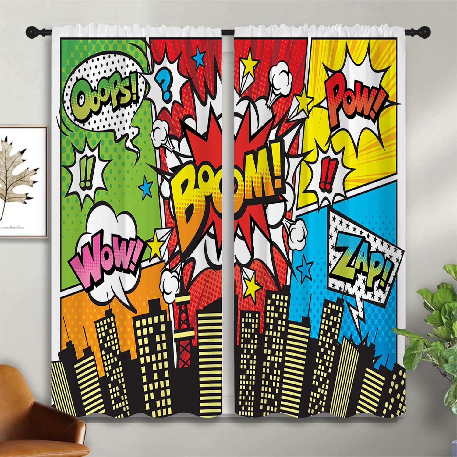 - ✿【Fashion Design】: Elevate your room decor with these Superhero City Wars Explosion theme printed decorative curtains featuring Colorful Comics Ar Design. They're for any room.