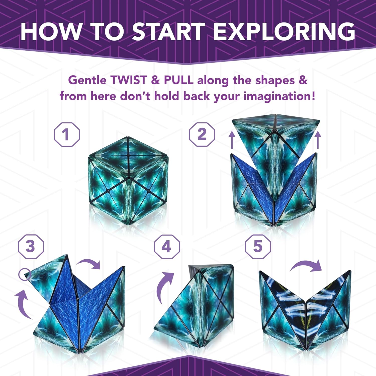 • 🧩 Master The Moto - To return to the magnetic magic cube, you must master the Moto! Our transformational puzzle is one of a kind - with time and patience, you will unlock the patterns and become a Duomoto Master! Combine with the other 4 designs to make larger, spectacular magnetic shape shifting puzzles. Duomoto is not compatible with Cubendi & Shashibo cubes.