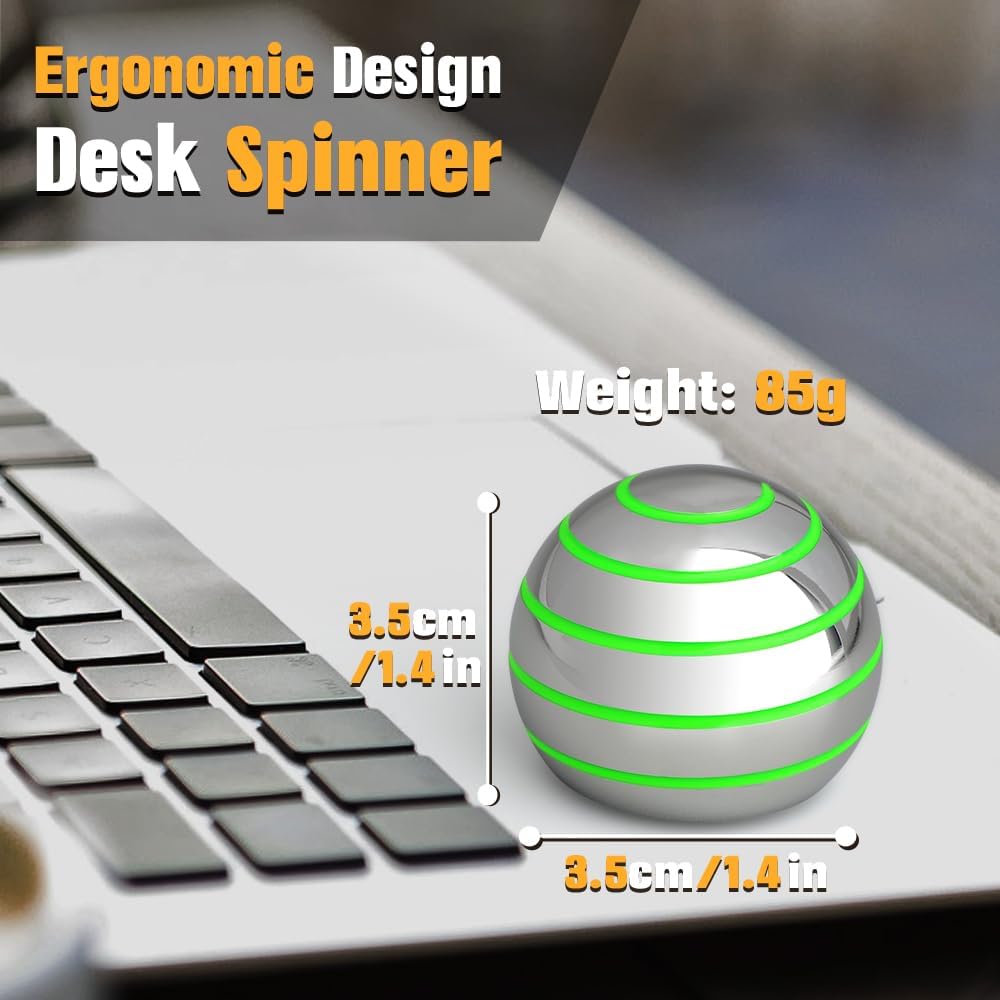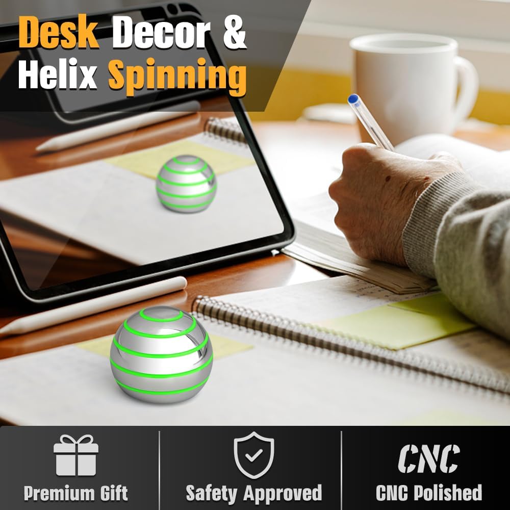 Kinetic Spinning Desk Toy Glow in The Dark for Kids Adults, Metal Full Body Optical Illusion Fidget Spinner Ball, Luminous Fingertip Gyro for Office Stress Relief, Birthday Gifts for Boys