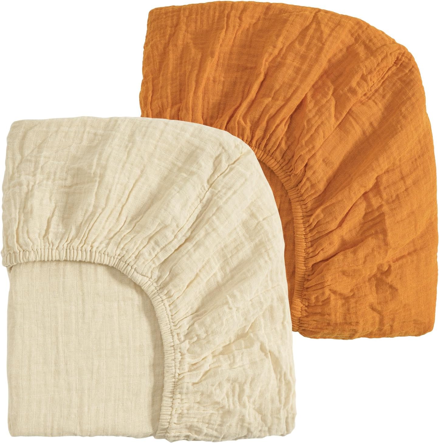 david's kids Muslin Mini Crib Sheets, 2 Pack Cotton Pack N Play Sheets for Boys Girls Neutral, Soft Breathable Baby Sheets Fit Pack N Play, Playard and Mini Crib Mattresses, Beige & Ginger