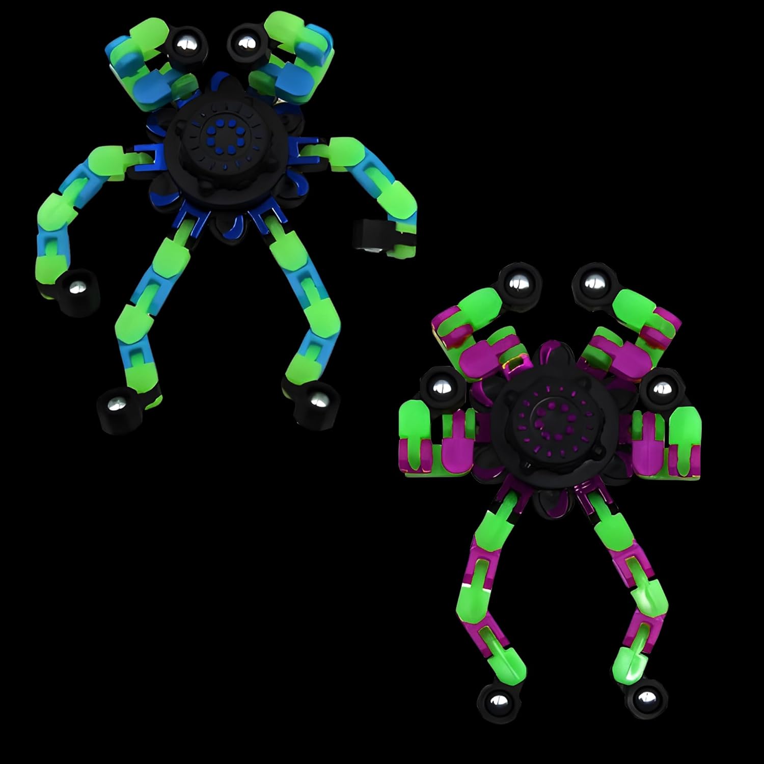 Fidget Spinners, DIY Transformable Chain Robot Finger Spinner, Glow in The Dark Deformable Creative Mechanical Gyro Toy Stress Relief Toy Fidget Fingertip Toy for Kids and Adults (2 Pack)