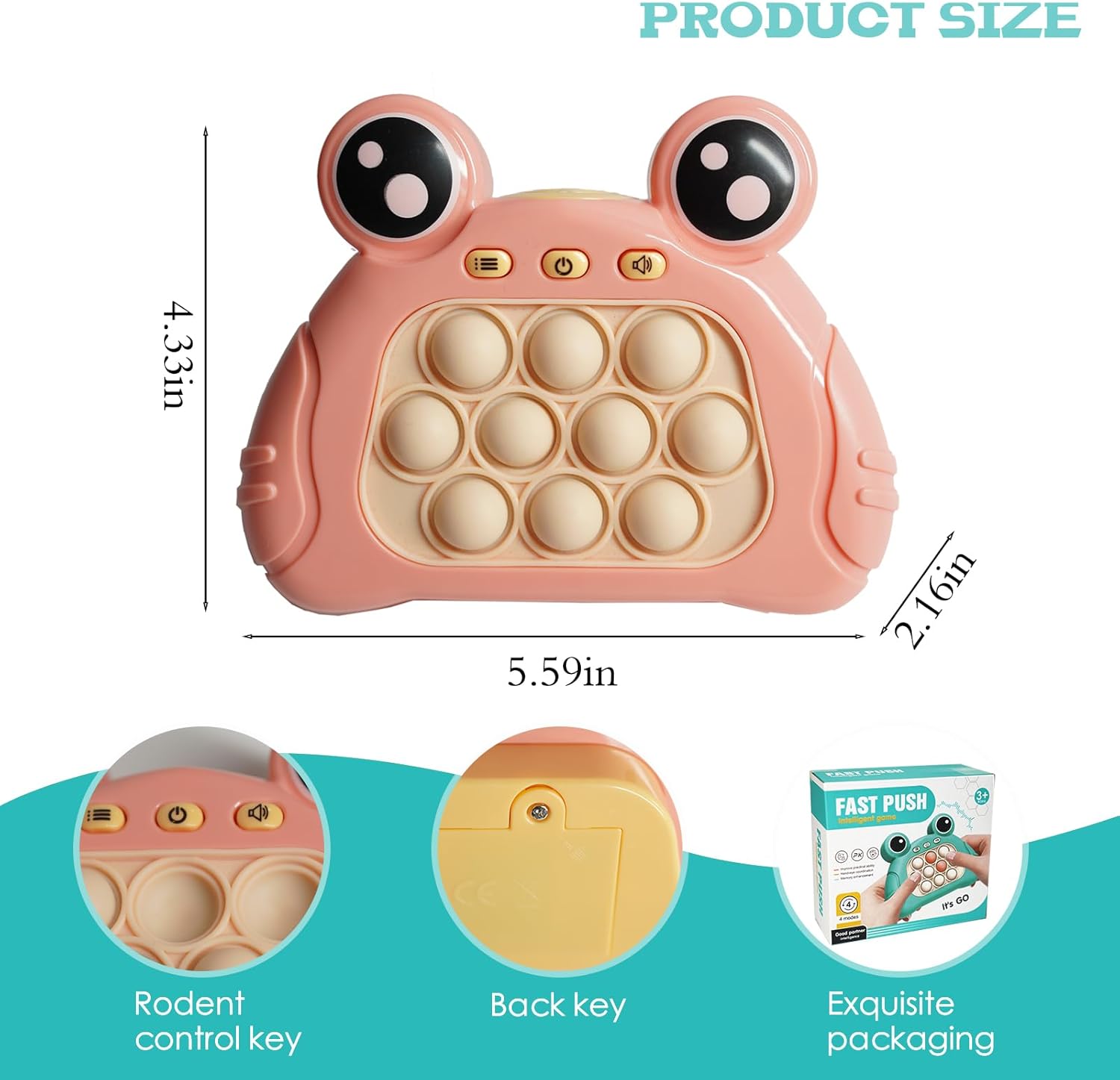 Pop Fidget Toys, Quick Push Bubble Pop Puzzle Games for Kids & Adults, Family, Party Game for 3 4 5 6 7 8 Year Gifts(Pink)