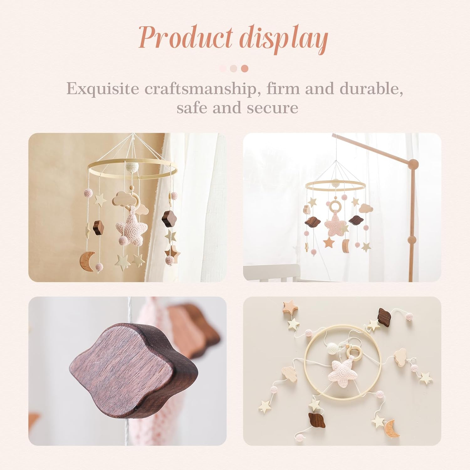 - ✨GENDER NEUTRAL BABY MOBILE - Beautiful baby mobile is in soft and natural colors - white and wood color. Neutral soothing color tones make this crib mobile be suitable for both baby boys and girls. Perfectly match any nursery decor or boho decor for any room of the house.
