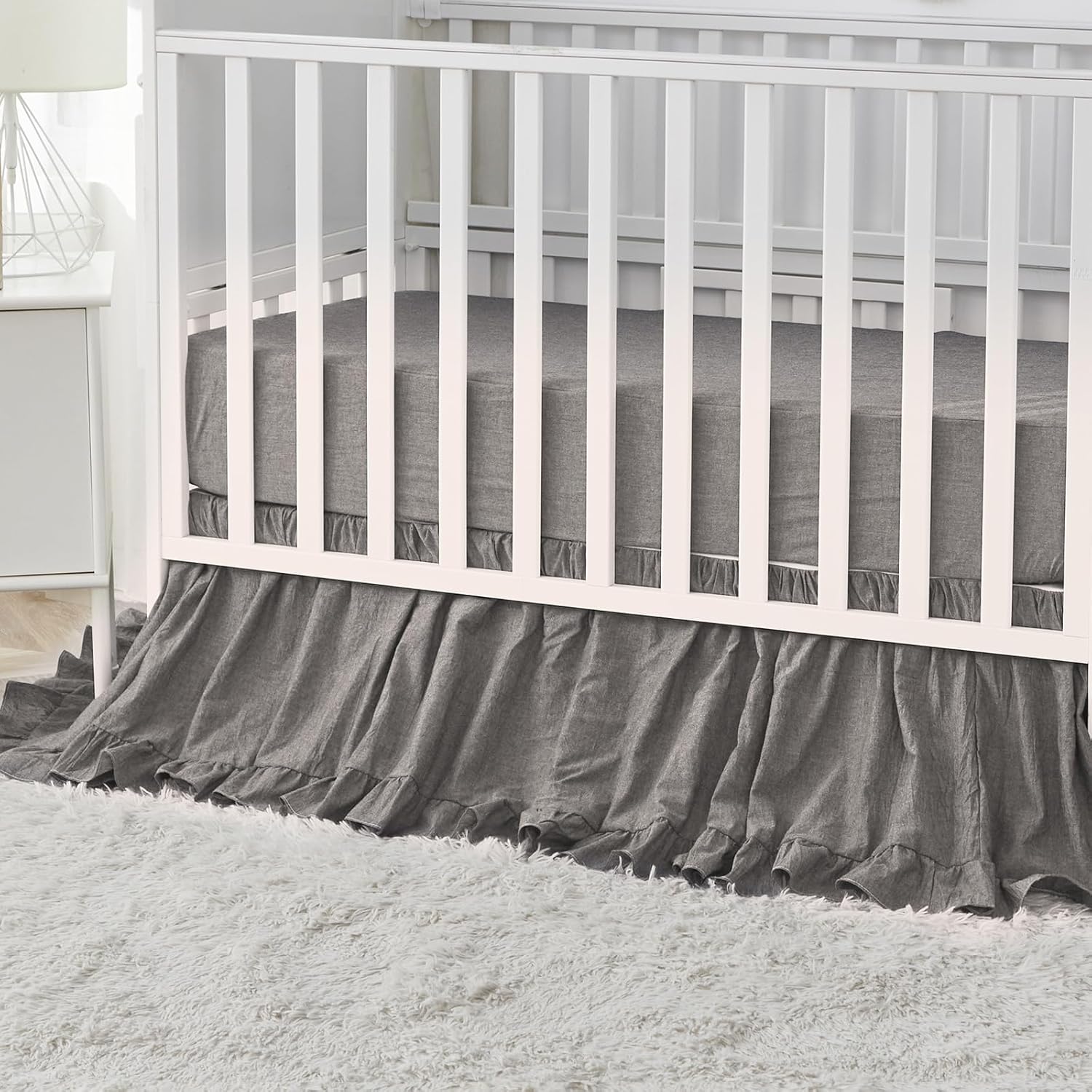 - 【MAGICAL】Crib Bed Skirt is 4-side, fits around the entire crib and is tailored with split corners for easy placement around posts. WHIMSICAL and ETHEREAL.
