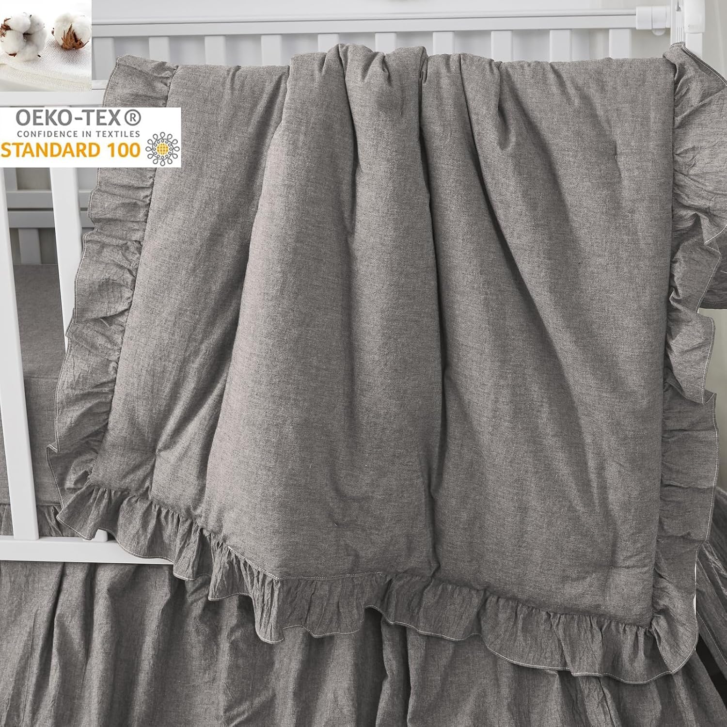 - 【UNIQUE DESIGN】 We use solid gray color baby bedding design to return to simplicity, not only make your baby feel more relax and comfortable life, but also match a variety of decoration styles. No need to worry about matching. You don't have to worry about it wrinkling because it's supposed to be wrinkled!