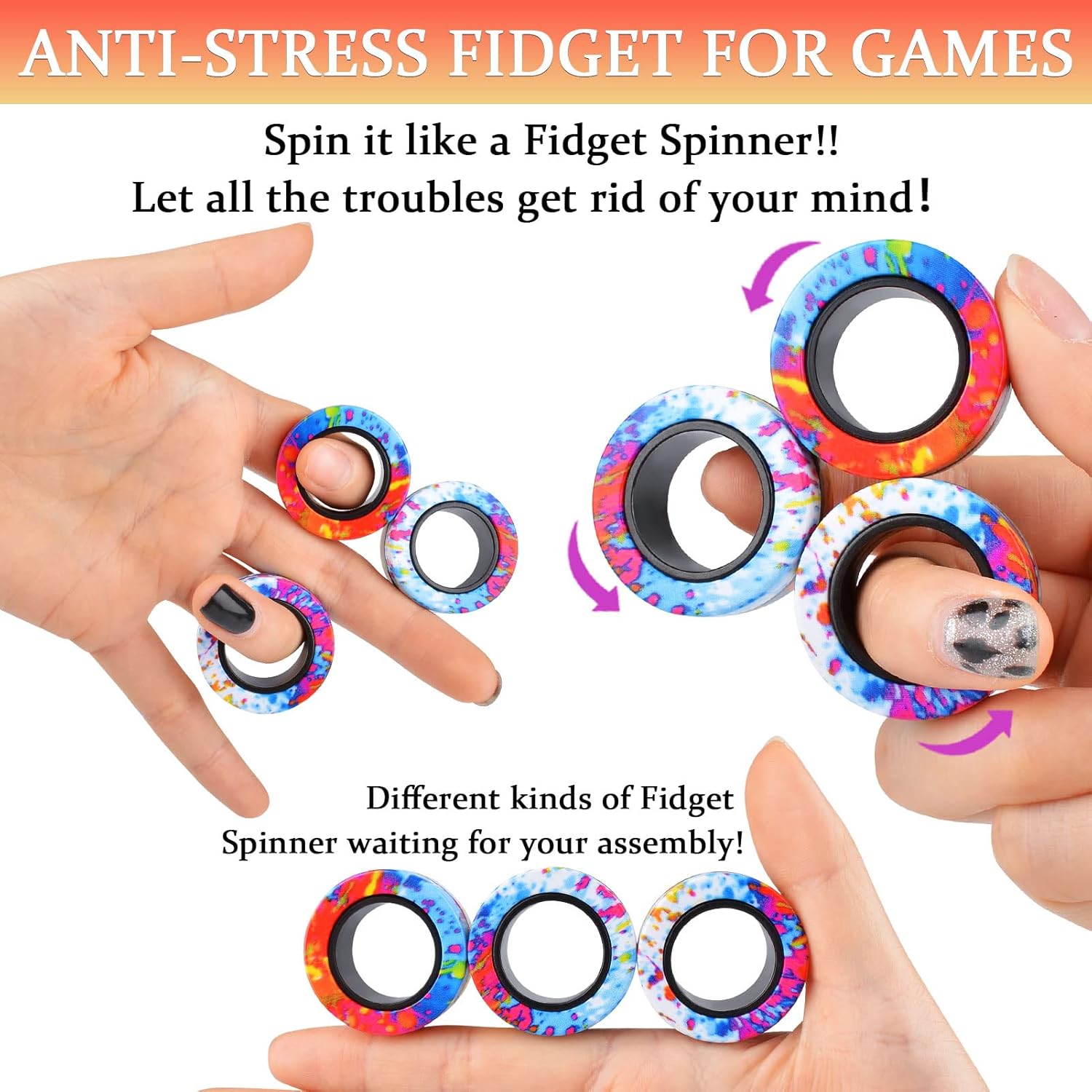 - ANTI-STRESS MAGNETIC SPIN RINGS: Magnetic fidget toys to relieve anxiety, stress, focus. Magnetic finger fidget toys are ideal for Autism, ADHD, or anyone with busy fingers. Plus, magnetic rings toy can help curb unwanted habits like nail biting, smoking