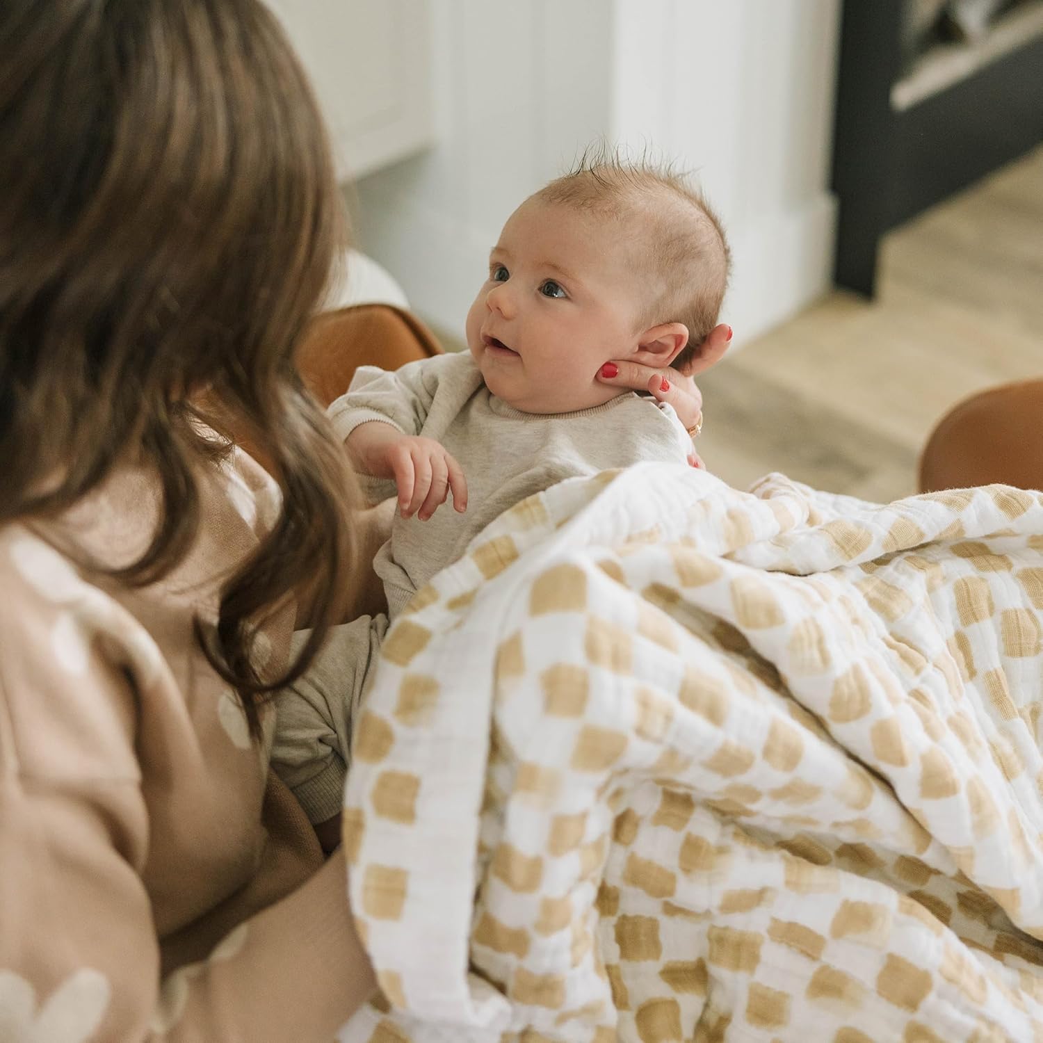 Little Unicorn Newborn Receiving Quilt | Ultra- Soft, Multi-Layered Muslin Fabric | Gift for Newborns & on-The-go (Adobe Checker)