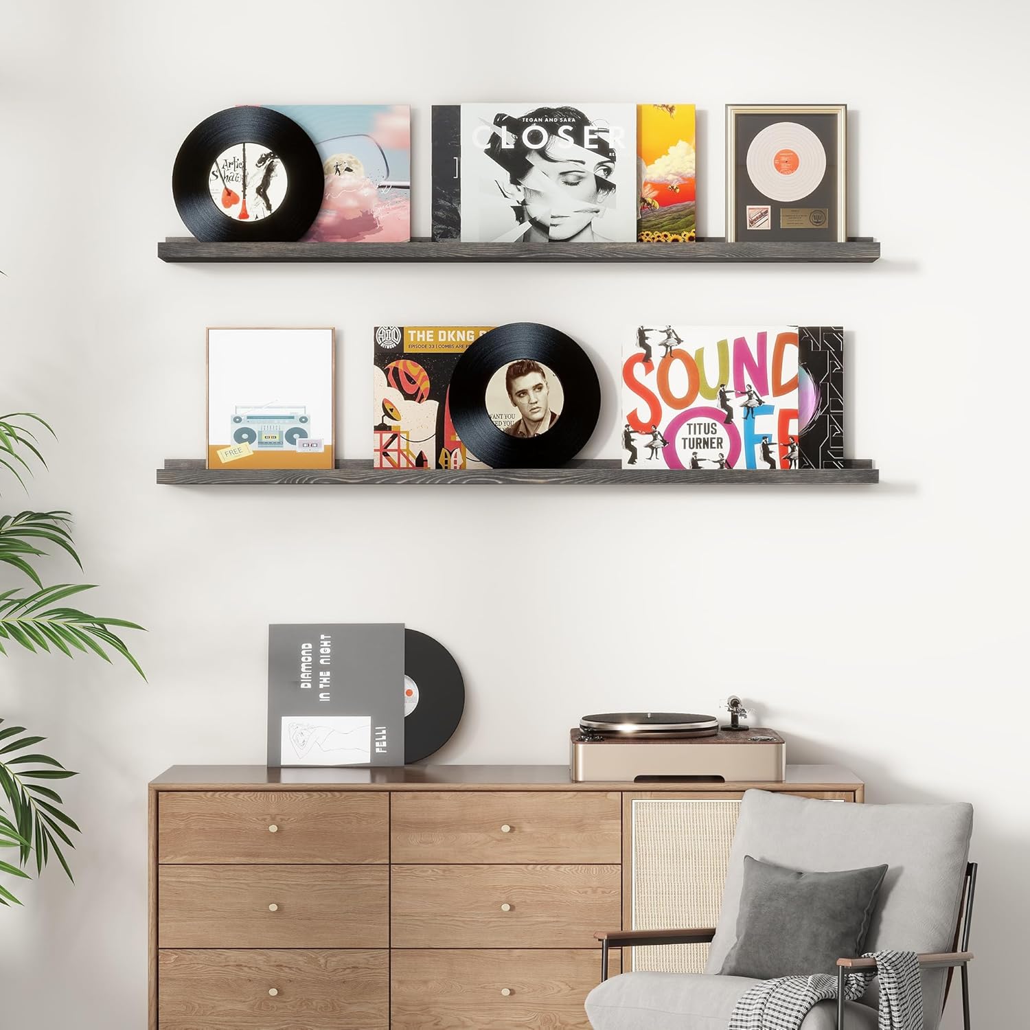 Picture Ledge Shelf, Floating Shelves Set of 2, Solid Pine Wood 55'' Long Large Nursery Book Shelves for Toys Storage, Kids Bookshelf for Living Room Bedroom Decor Books Photo Frames, Grey