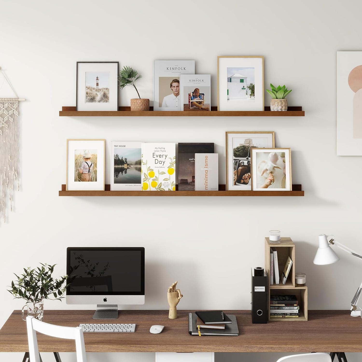 Picture Ledge Shelf, Floating Shelves Set of 2, Solid Pine Wood 55'' Long Large Nursery Book Shelves for Toys Storage, Kids Bookshelf for Living Room Bedroom Decor Books Photo Frames, Walnut