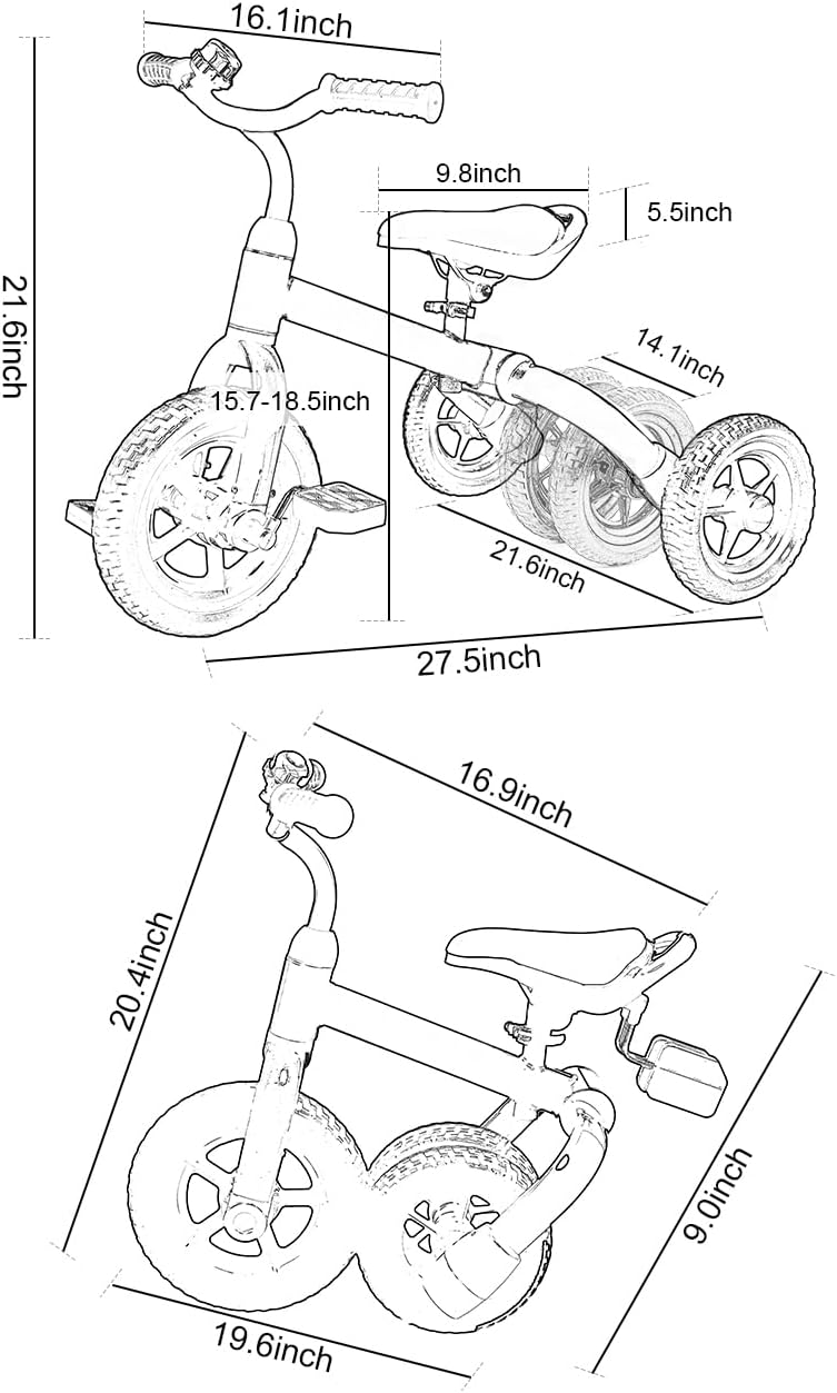 - 😊Recommended Age: Ideal for 2 to 5-year-olds, this adaptable bike transitions from a tricycle (24-32 months) with pedal or pedalless options to a balance bike (2-4 years). The adjustable seat (15.7 to 18.5 inches) caters to your child's growth, ensuring a comfortable fit. With a robust 55 lbs load capacity, it offers a durable and safe ride.