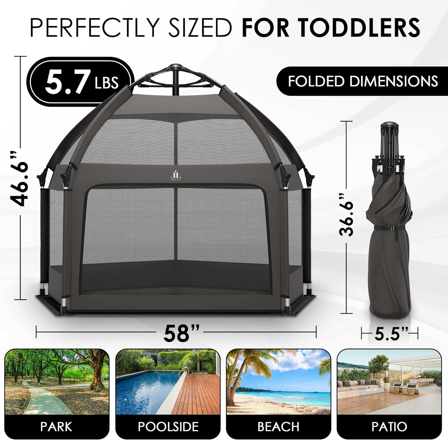 Pop-Up Playpen for Babies & Toddlers Foldable with Canopy (UPF 50), Self-Inflating Playmat, Wind Shade & Carry Bag Durable Baby Beach Tent, Outdoor