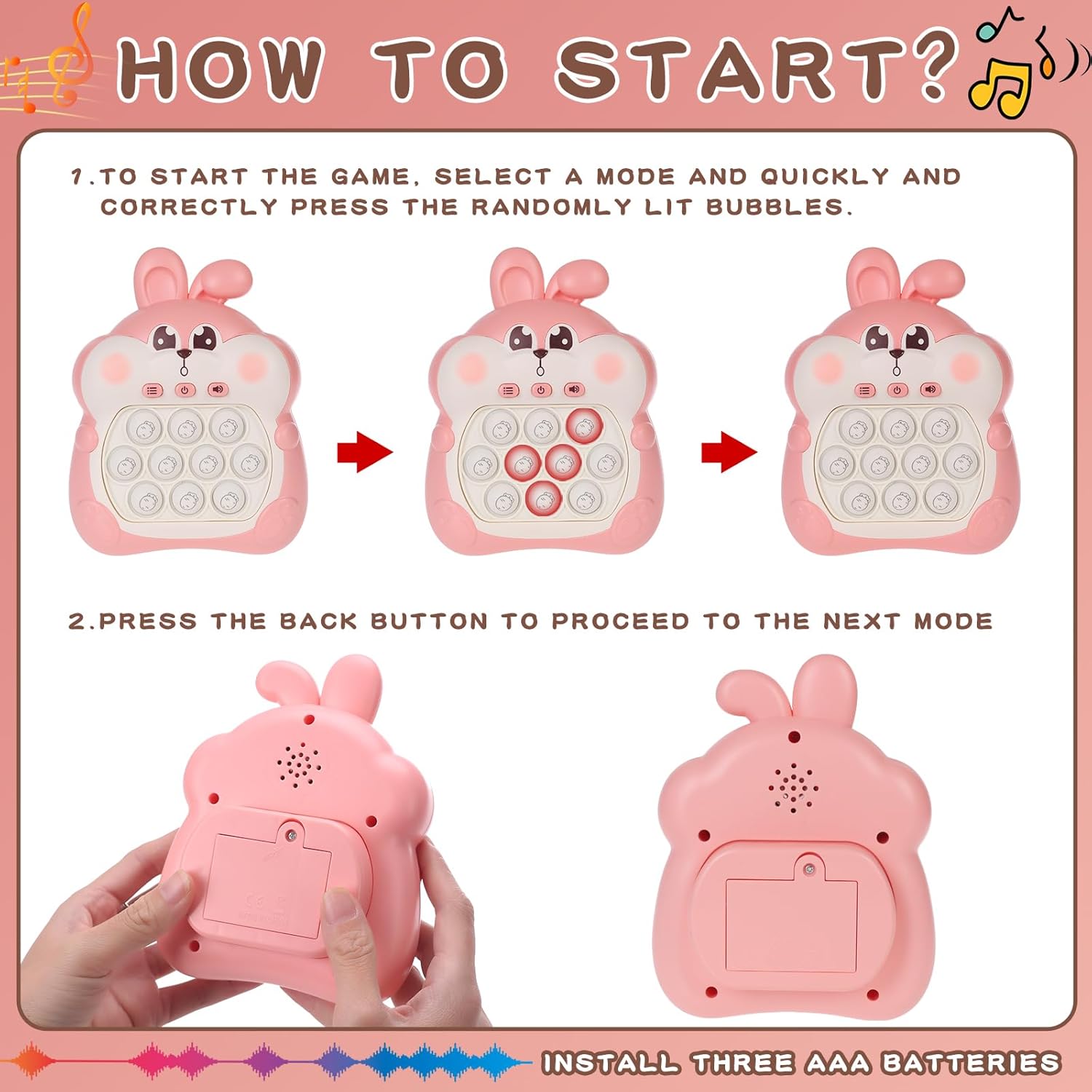 Fast Push Game Pop Fidget Toys for Kids, Fast Push Bubble Game, Quick Push Pop Game for Boys & Girls Age 3-12, Handheld Puzzle Game Sensory Toys Relaxation and Decompression (Pink Bunny)