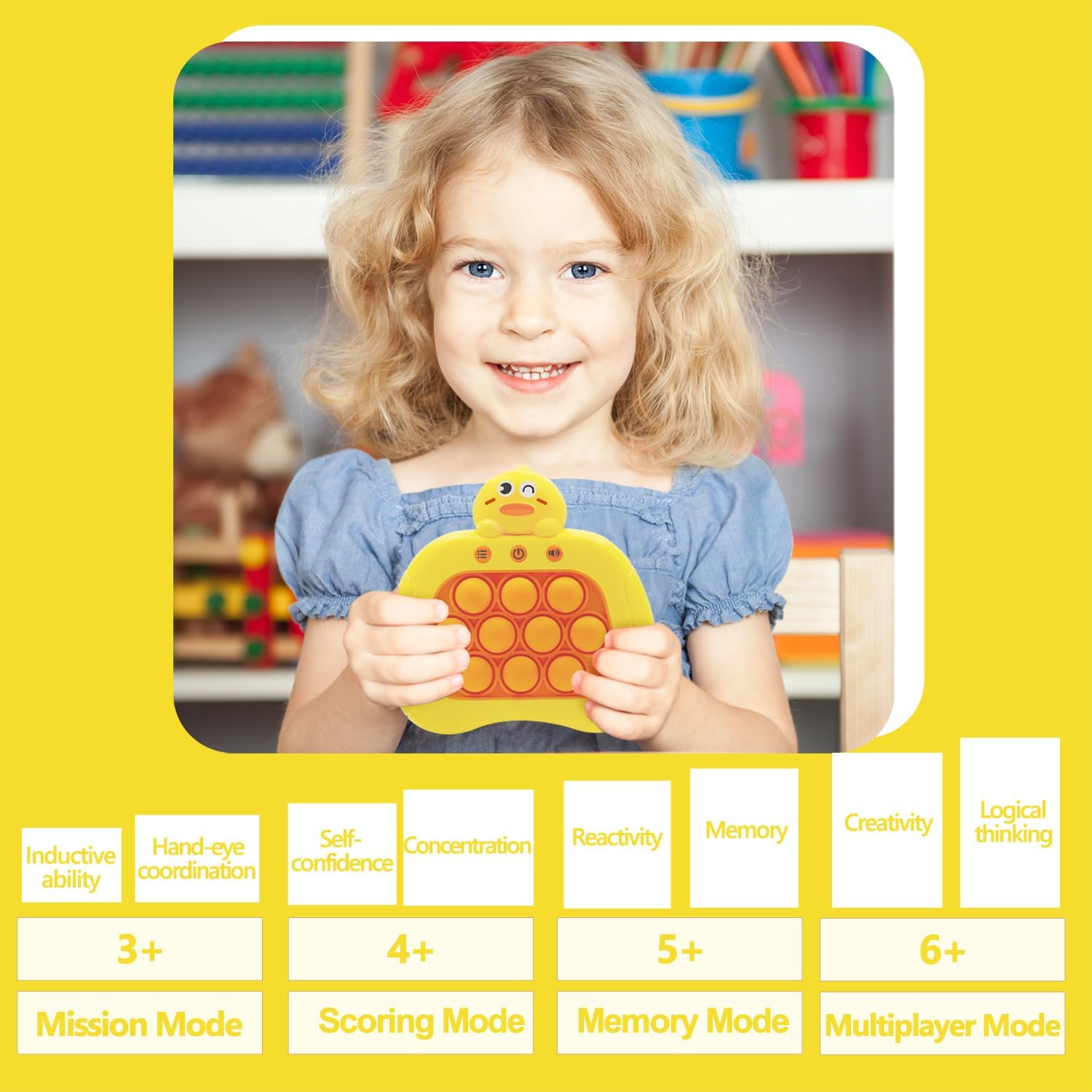 Quick Push Pop Game Fidget Toys Pro for Kids Adults, Handheld Puzzle Game Machine, Squeeze Poppet Sensory Fast Push Bubble Toy,Party Game,Birthday Gitfs Duck