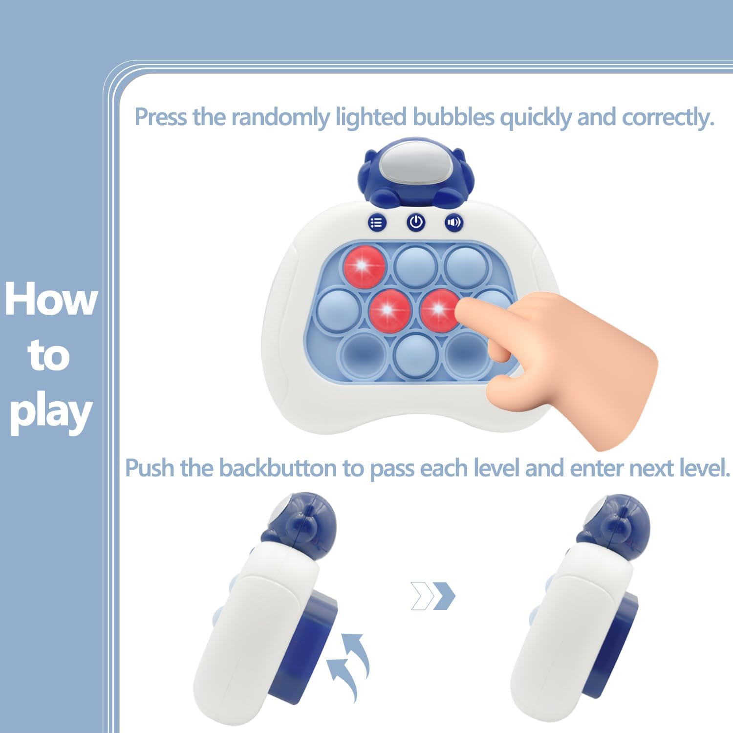 Quick Push Pop Game Fidget Toys Pro for Kids Adults, Handheld Puzzle Game Machine, Squeeze Poppet Sensory Fast Push Bubble Toy,Party Game,Birthday Gitfs Astronaut