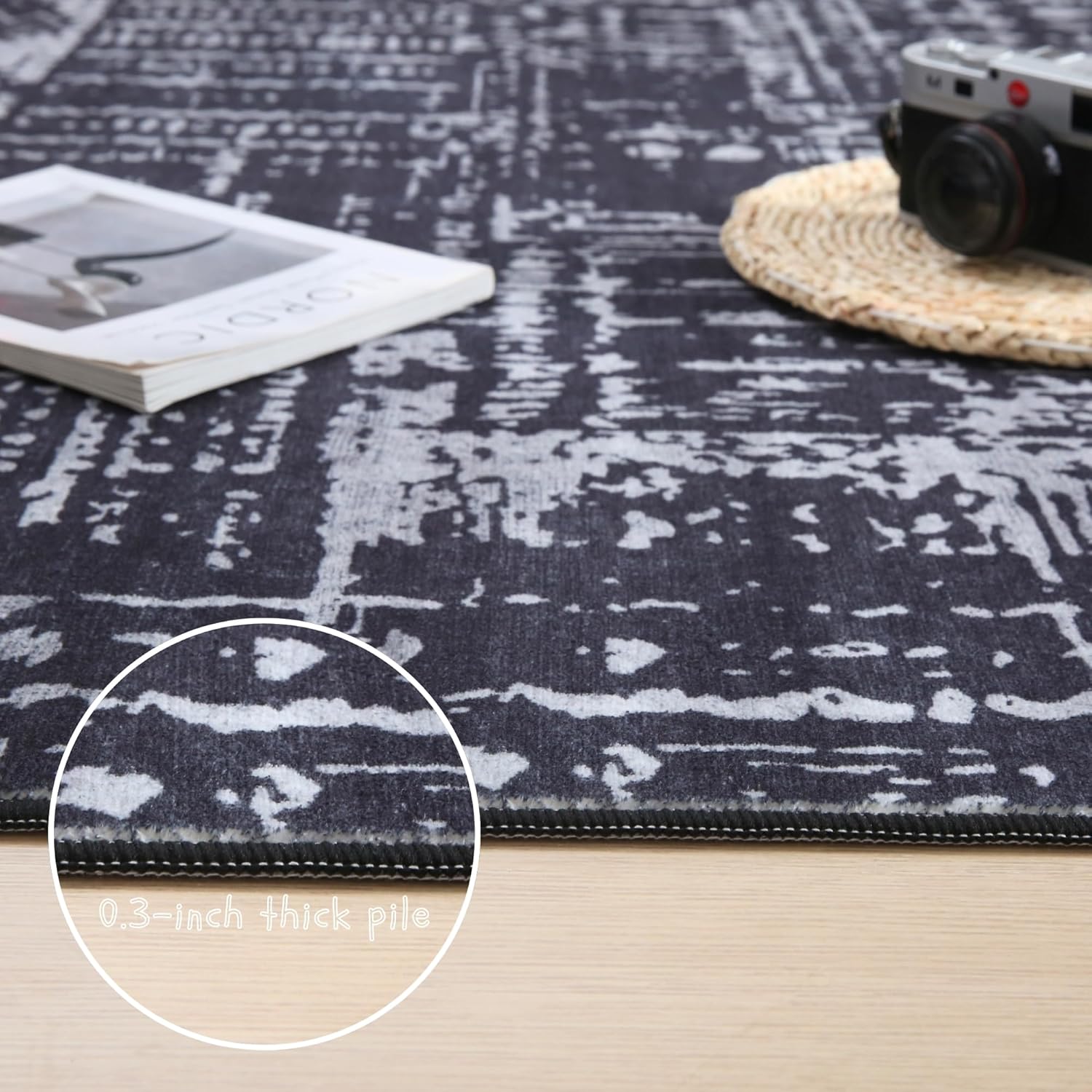 Area Rugs 8x10 Rug for Living Room Clearance Washable Boho Area Rug Non Slip Moroccan Vintage Low Pile Large Rug for Living Room, Bedroom, Farmhouse, Dining Room, Kids Playroom(Black)
