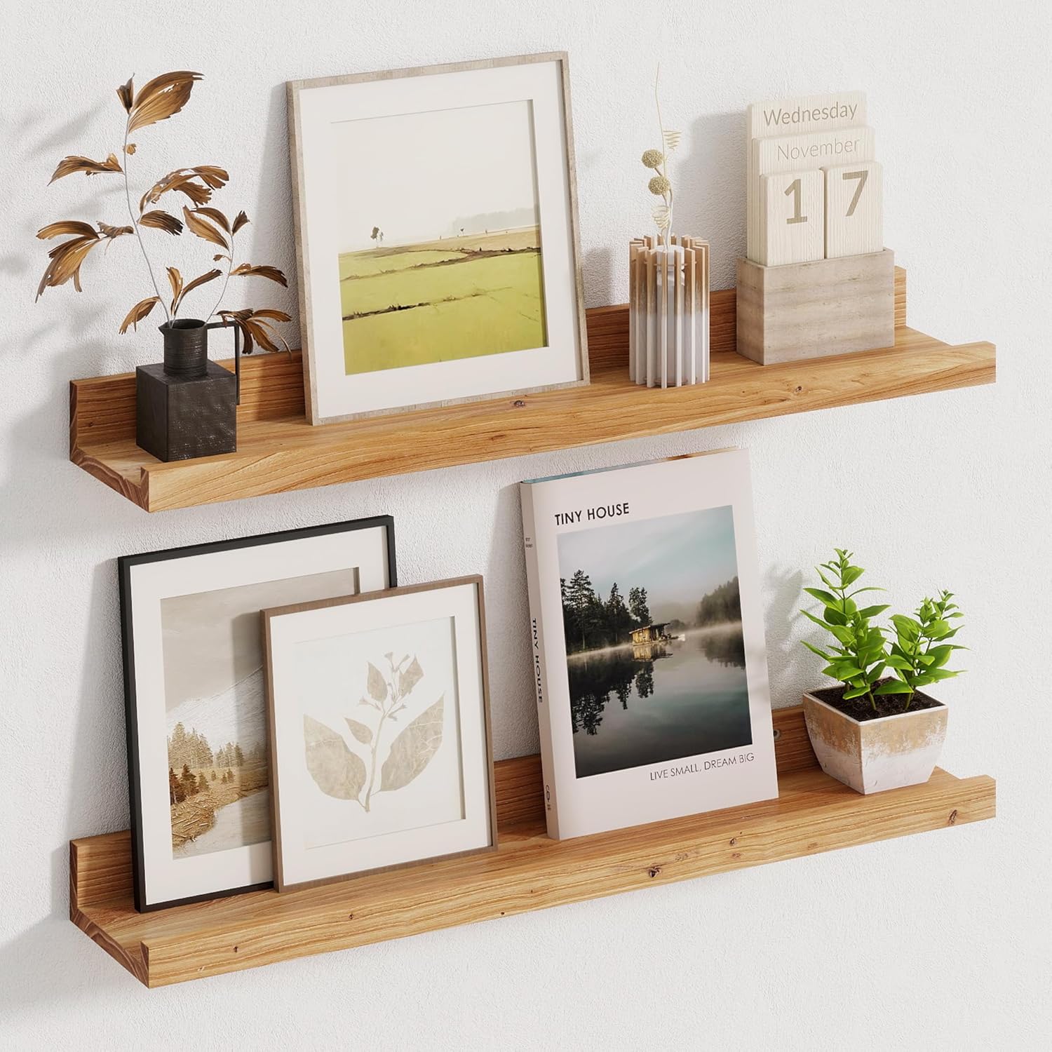 Picture Ledge Shelf - 24 Inches Floating Shelves Set of 2 - Rustic Elm Wood Ledge Shelves for Toys Storage, Kids Bookshelf Wall Mounted for Bedroom, Living Room, Kitchen - 24 Inches - Natural Color