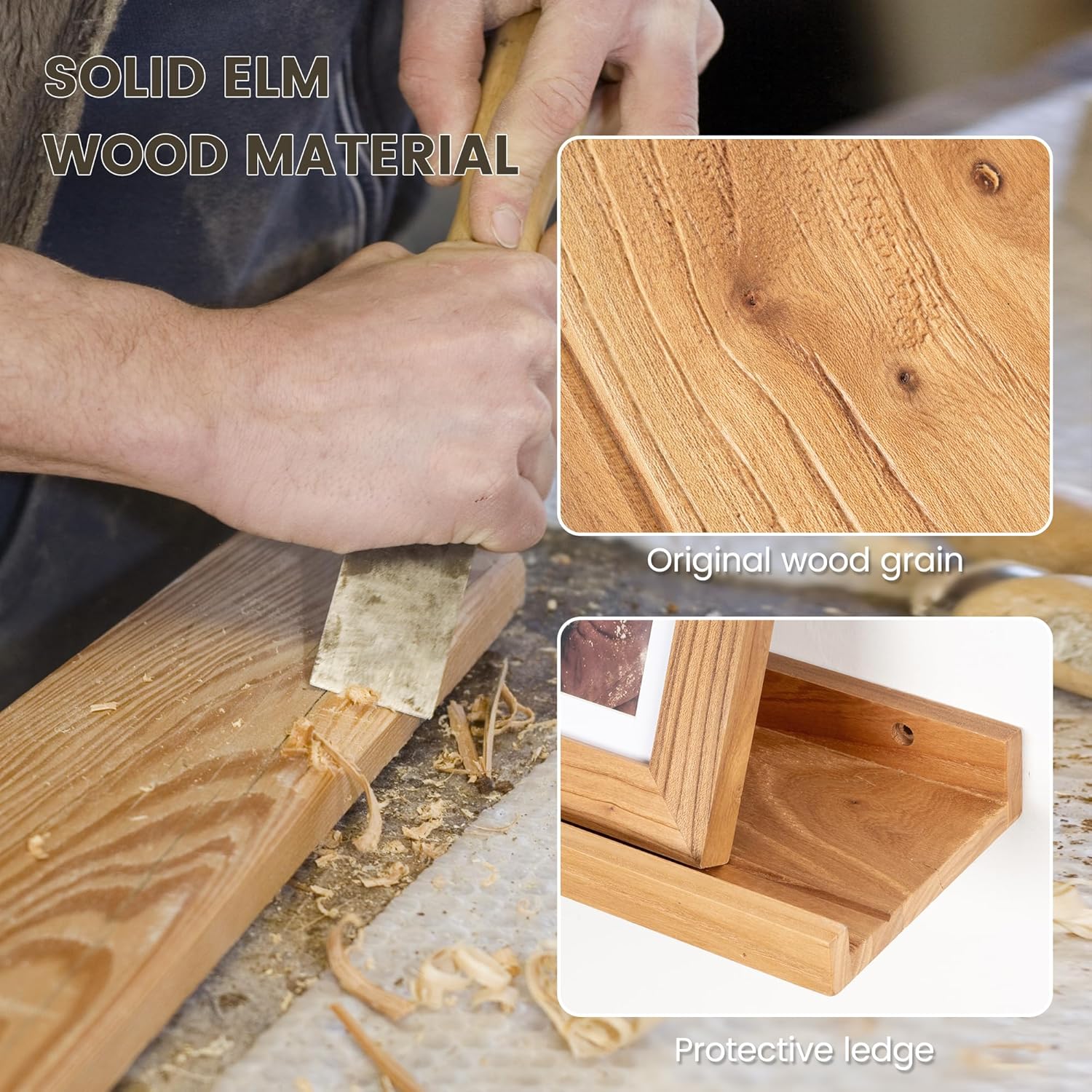 - ă100% Solid Elm Wood ShelvesăMade from reclaimed elm wood, known for its beautiful texture, we carefully choose pieces with unique wood knots and grain patterns. Our hand-crafted wood shelf feature a rustic natural finish, ensuring durability for lasting appeal. Each shelf is diffrent in grain, color, finish, and texture, adding a touch of uniqueness to your decor.