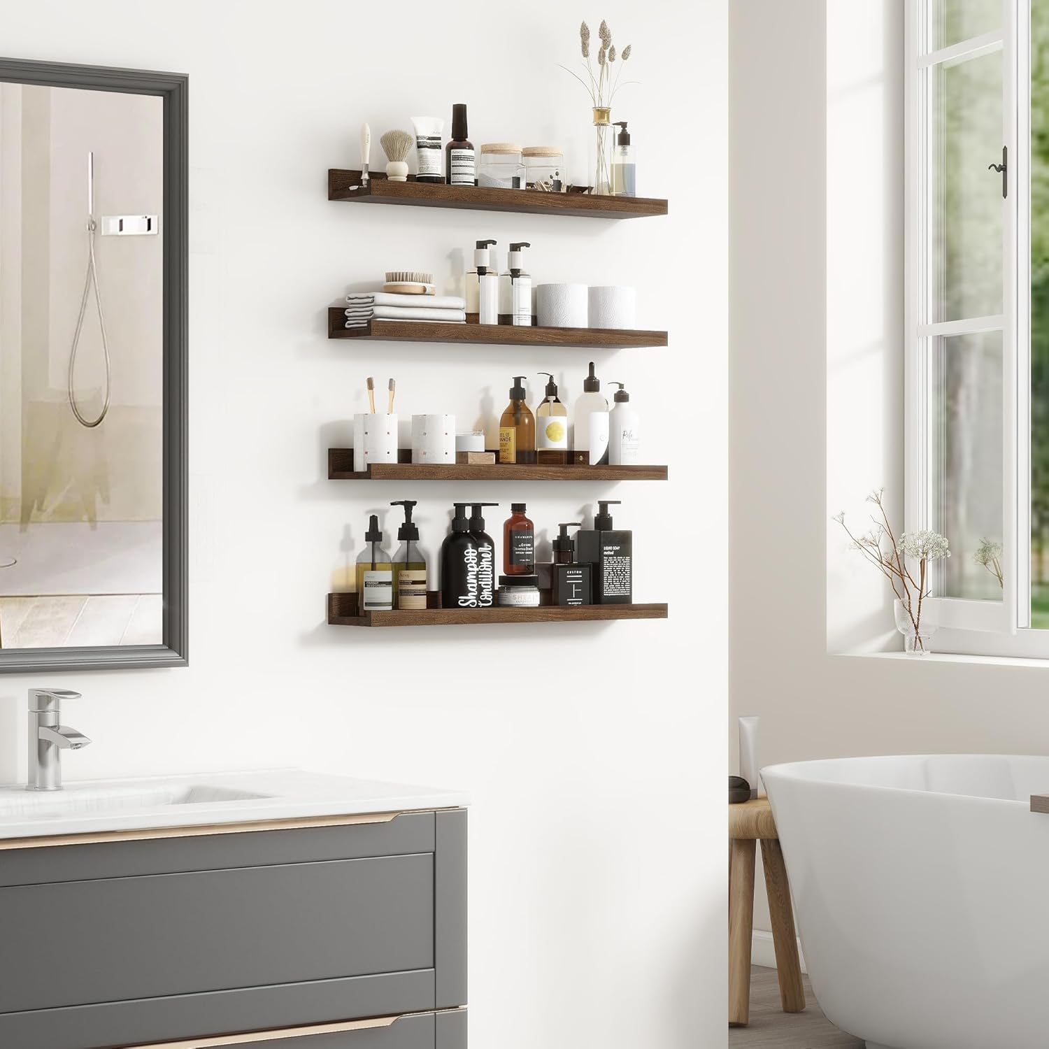 - ăEasy and Quick InstallationăOur Picture Ledge Shelves are designed for seamless installation. The package includes all the necessary hardware needed to mount it easily onto any wall space. Just follow the simple instructions provided, and your wall shelves will be ready for use in minutes.