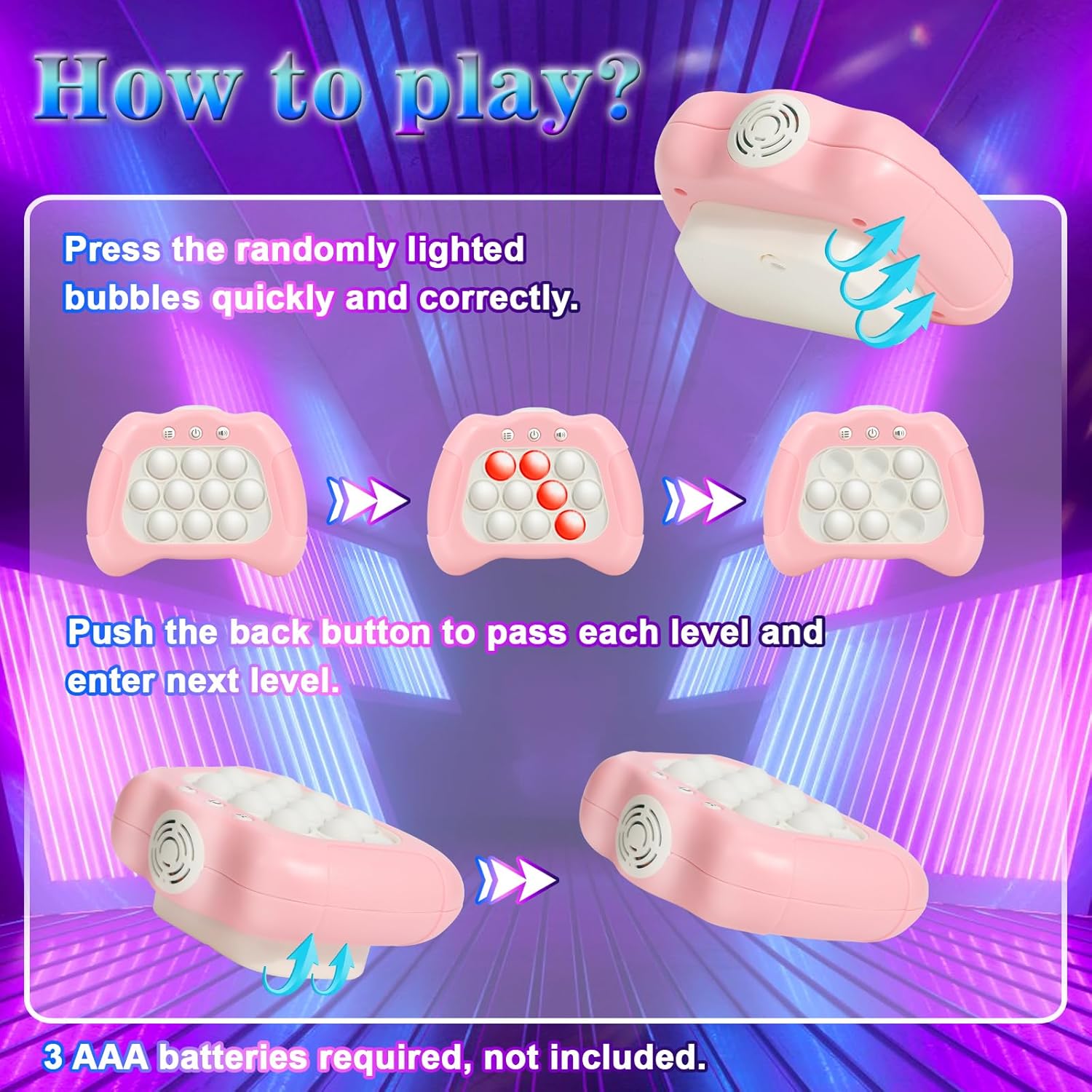 Fast Push Machine Light Up Fidget Toys for Kids Adults, Handheld Game for Kids 3-12, Quick Push Bubble Stress Toy, Sensory Toys Travel Games, Xmas Birthday Gifts for Boys Girls (Pink)