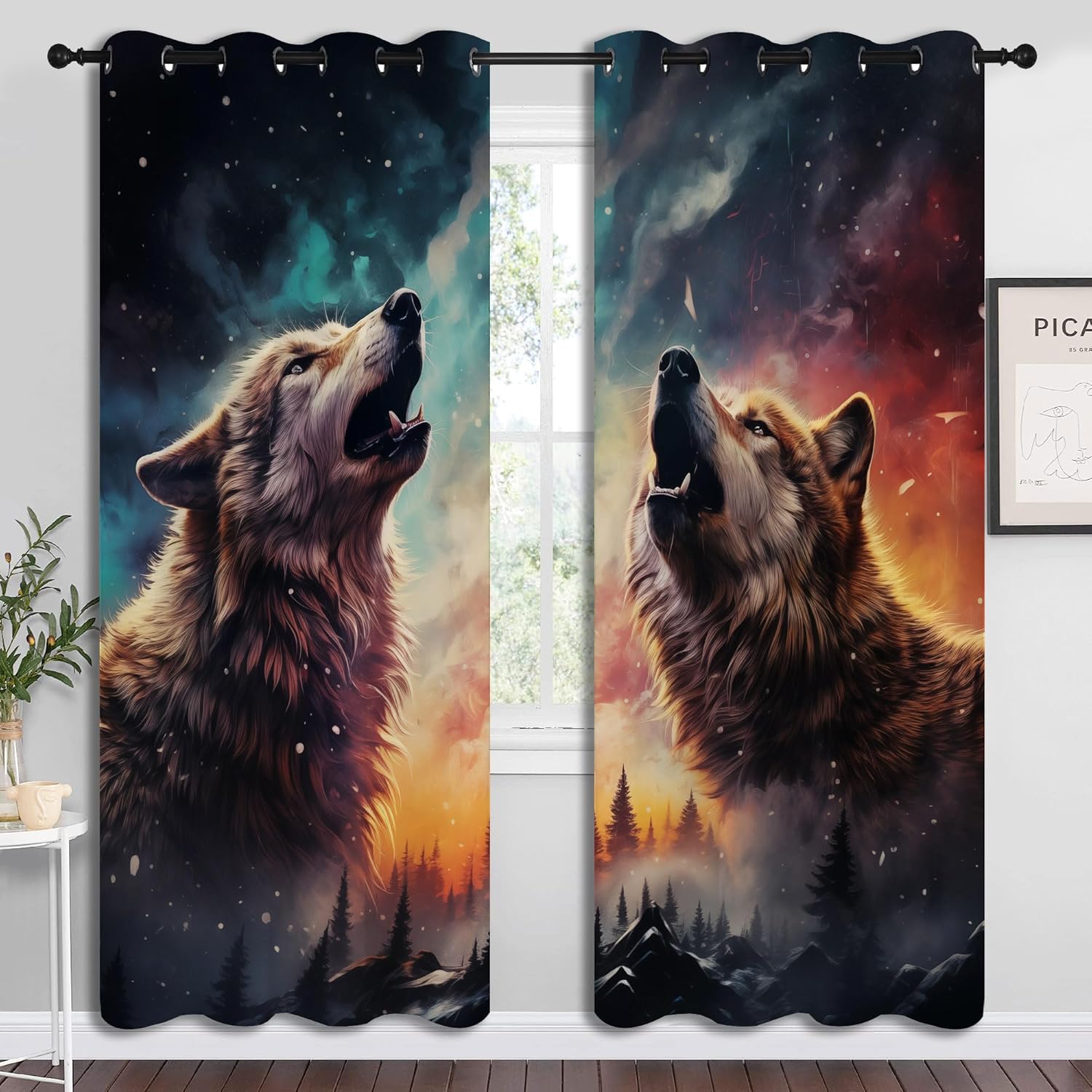 - ✿【Fashion Design】: Featuring a "Fantasy Wolf themed print with a "Colorful Galaxy Misty Forest Wildlife design, these curtains will enhance the decor of any room. Perfect for kitchens, bedrooms, living rooms or any other space in your home.