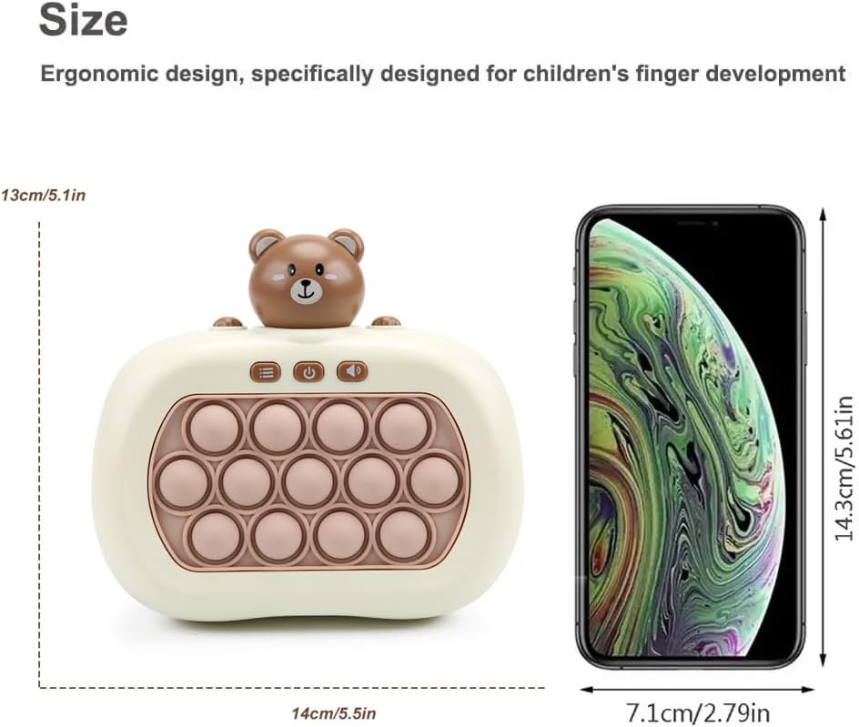 - 【Safe and Durable】The pop fidget toy is made of high-quality silicone and plastic, which is sensitive to the touch, just gently press the bubbles, not easy to damage, and is safe, and durable. The non-slip handle, compact and lightweight, and ergonomic design allow kids to enjoy the game anytime, anywhere, helping them away from phones and tablets, and effectively reducing screen time. Note: The game console needs 3 AAA batteries to be used (the product does not include batteries)