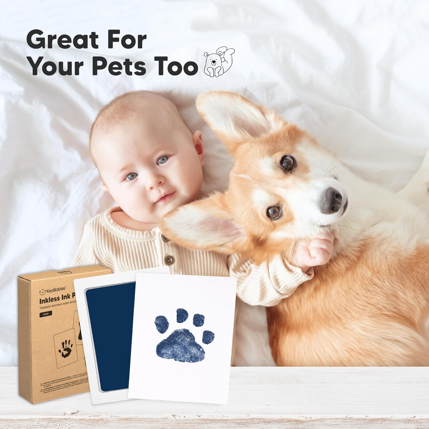 4-Pack Inkless Baby Hand and Footprint Kit - Mess Free Ink Pad for Newborn Keepsake, Dog Nose & Paw Print Kit, Clean Touch Ink Pad for Baby Hand & Footprints, Ideal New Mom Gifts (Jet/Navy, Large)
