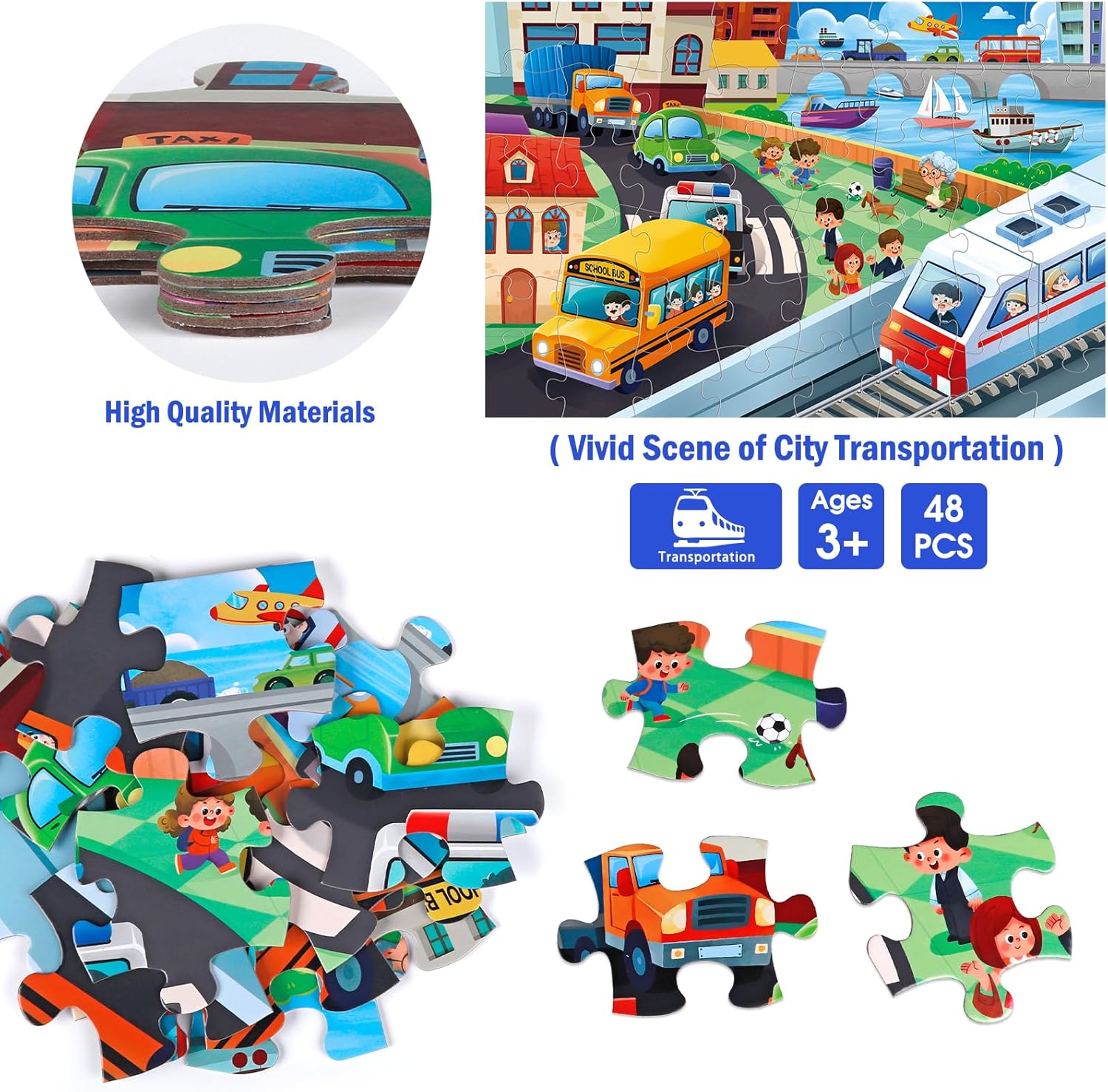 Jumbo Floor Puzzle for Kids,City Transportation Jigsaw Large Puzzles,48 Piece City Life Vehicle Puzzle for Toddler Ages 3-5,Children Learning Preschool Educational Toys,Gift for 4-8 Years Old