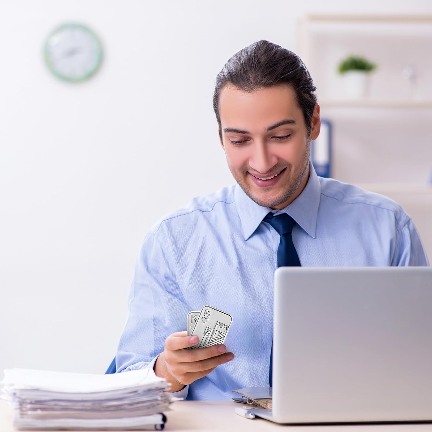 2Pcs Metal Fidget Slider, Metal Fidget Toy Fidget Slider for Adults Magnet Fidget Toy EDC Fidget Clicker Metal Poker Push Card Fidget Slider Stress Relief Toy,Silver