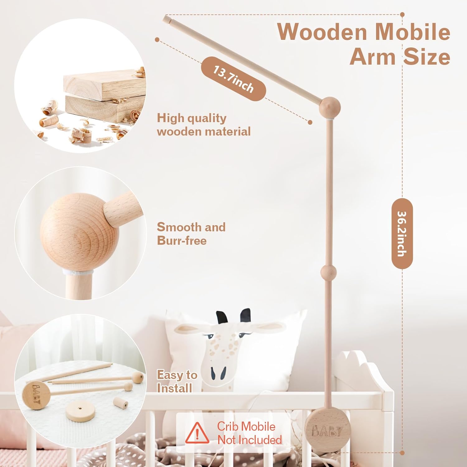 - 👶🏻【Safe Material】JETM·HH baby mobile arm is made of 100% natural beech wood, which is non-toxic and burr-free. The smooth surface can protect the baby's soft and fragile skin. The mobile device of the crib has an anti-slip design and is enlarged. The design can better adapt to various cribs and be more firmly fixed on the crib