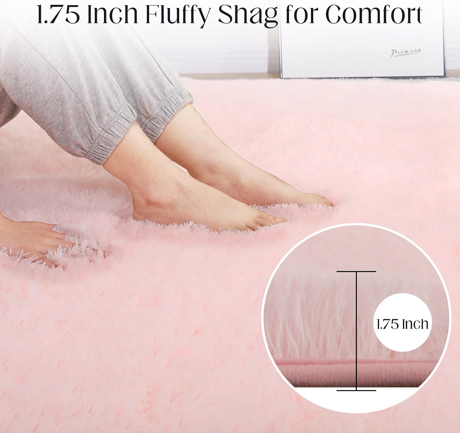 Soft 5x7 Pink Rug, Fluffy Area Rugs for Living Room, Plush Area Rugs for Bedroom, Non-Slip Indoor Carpet for Nursery, Study Room, Kids Room, Room Decor