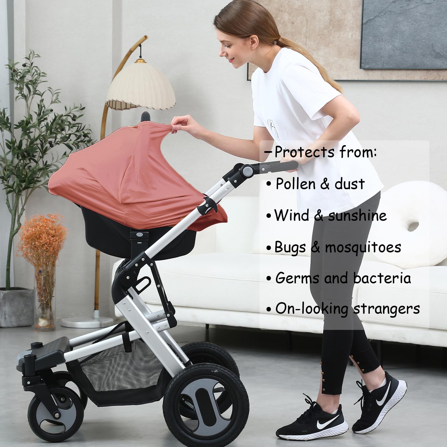Car Seat Cover Baby for Nursing, Baby Breastfeeding Cover Carseat Canopy Covers, Solid Color Multi-use Nursing Cover for Babies (Bronze red)