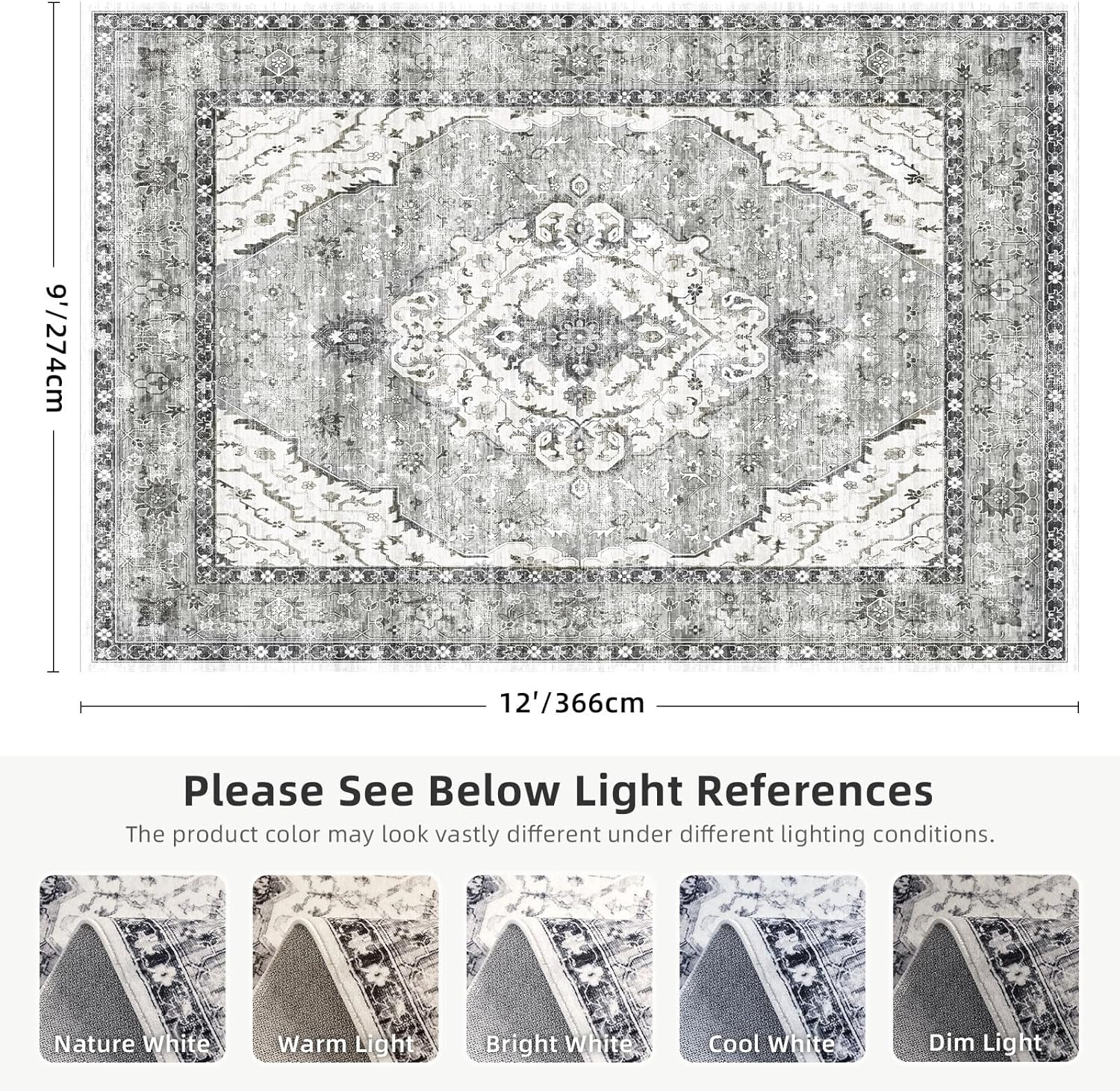 - [A Great Choice for Home Decor]: The Deerly classic rug is designed with the floral pattern print and Unique faded style to add artistic flair to your space. This oriental 9×12 area rug provides your home with a better choice for creating a warm living environment. Note: The product color may look vastly different under different lighting conditions. It may look gray, mixed with a little navy, or black.