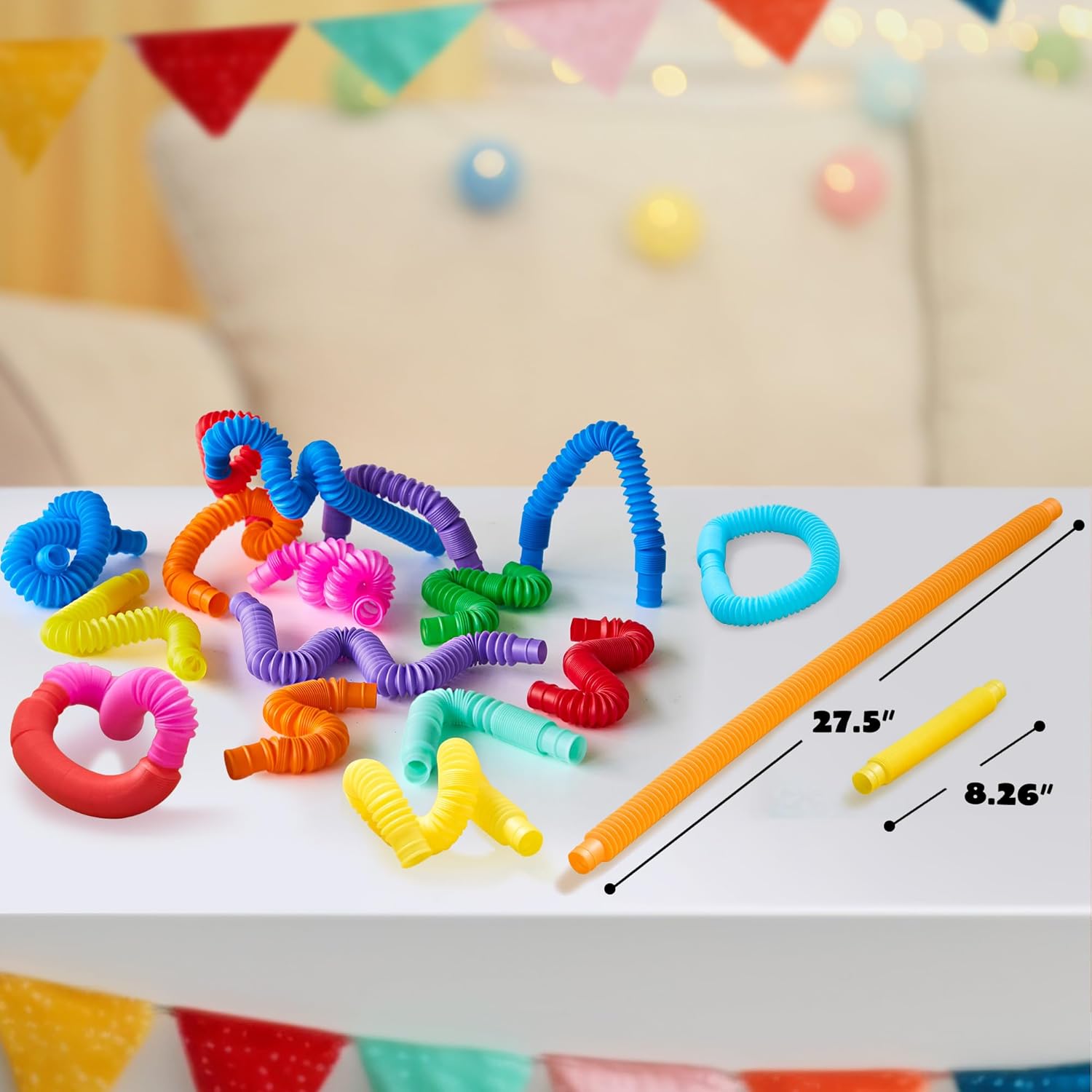 - Fun Pop Tubes Set: This sensory toys set can be stretched, rotated and twisted to form different shapes, or multiple fidget tubes can be connecte. Inspire your kid's imagination and explore all kinds of creative play with JOYIN pop tubes toddler toys. The 8 bright colors, soft touch, and satisfying rustling sound bring extra-sensory fun to boys and girls
