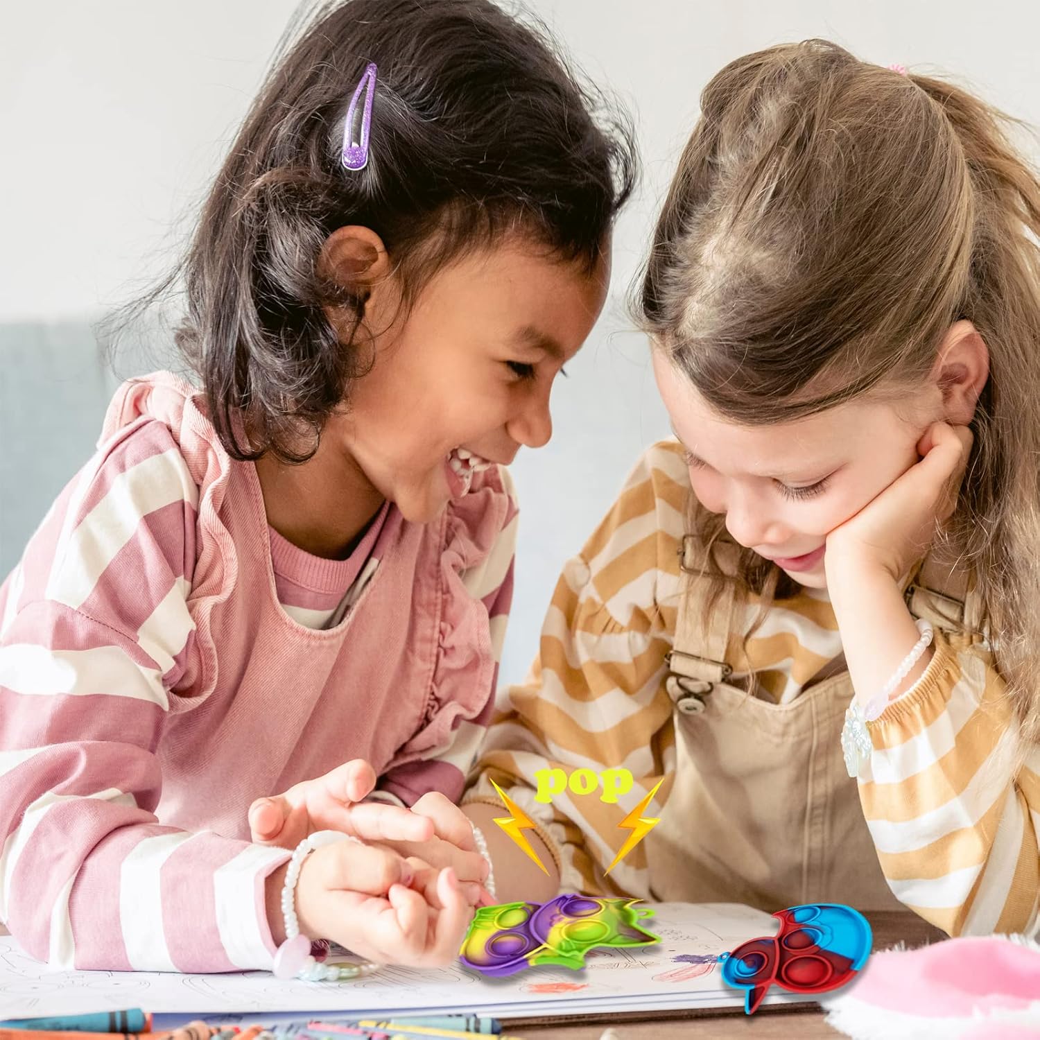 - Reduce Stress and Anxiety: You can just use pop toys set to play, squeeze, stretch and flip to reduce stress and anxiety. The colorful mini pop toys can reduce children's anxiety, effectively attract children's attention and keep them quiet and focused.