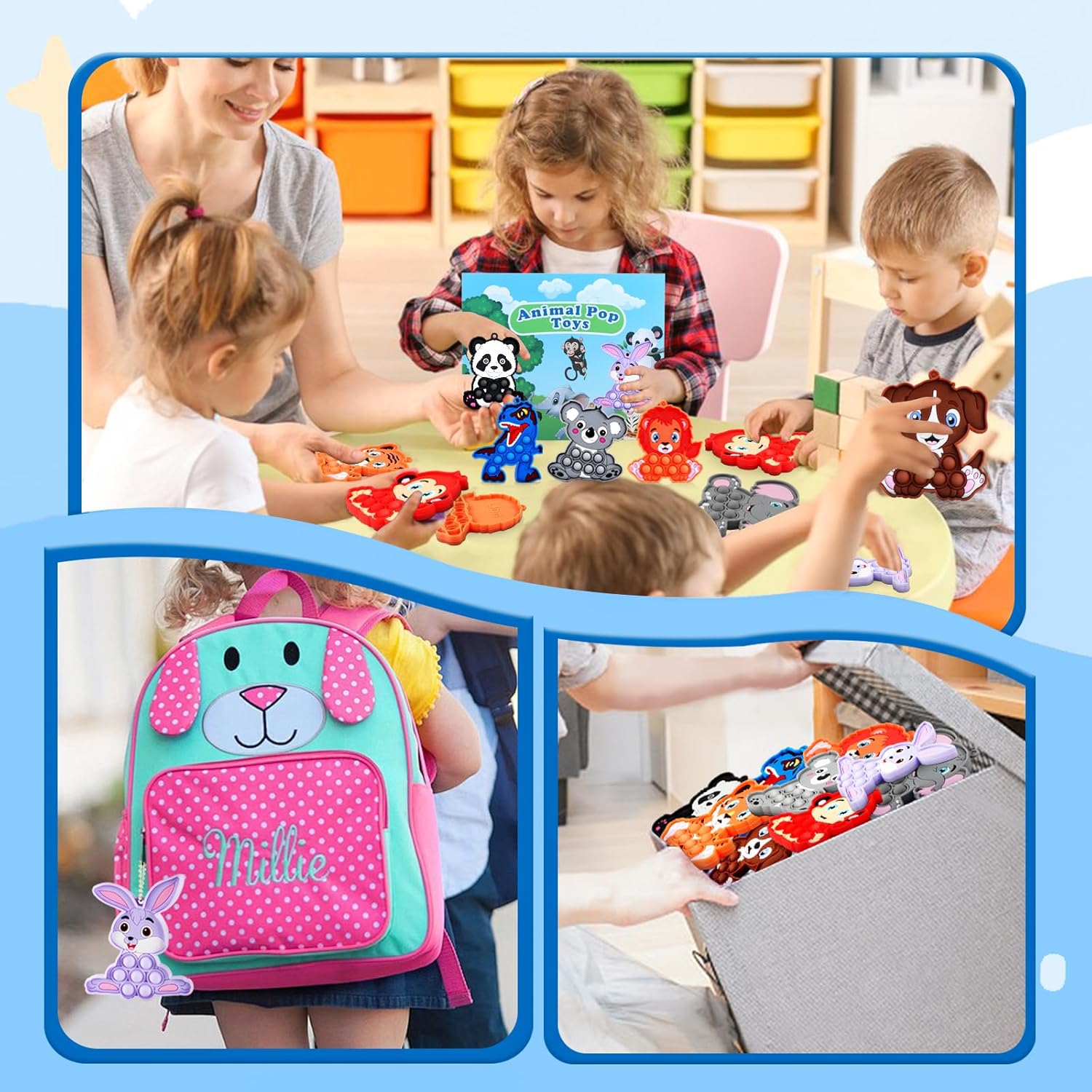 - 【Stress Relief Fidget toys】When press the bubbles, the animal pop fidget toys will make a slight popping sound, it’s very enjoyable and decompressed!Whether you want to naturally relieve accumulated stress or anxiety caused by work overload, school or personal issues or you simply want to surprise your little one with a fun, entertaining toy that will keep them engaged for hours, this animal pop fidget toys sensory toys is the perfect solution!