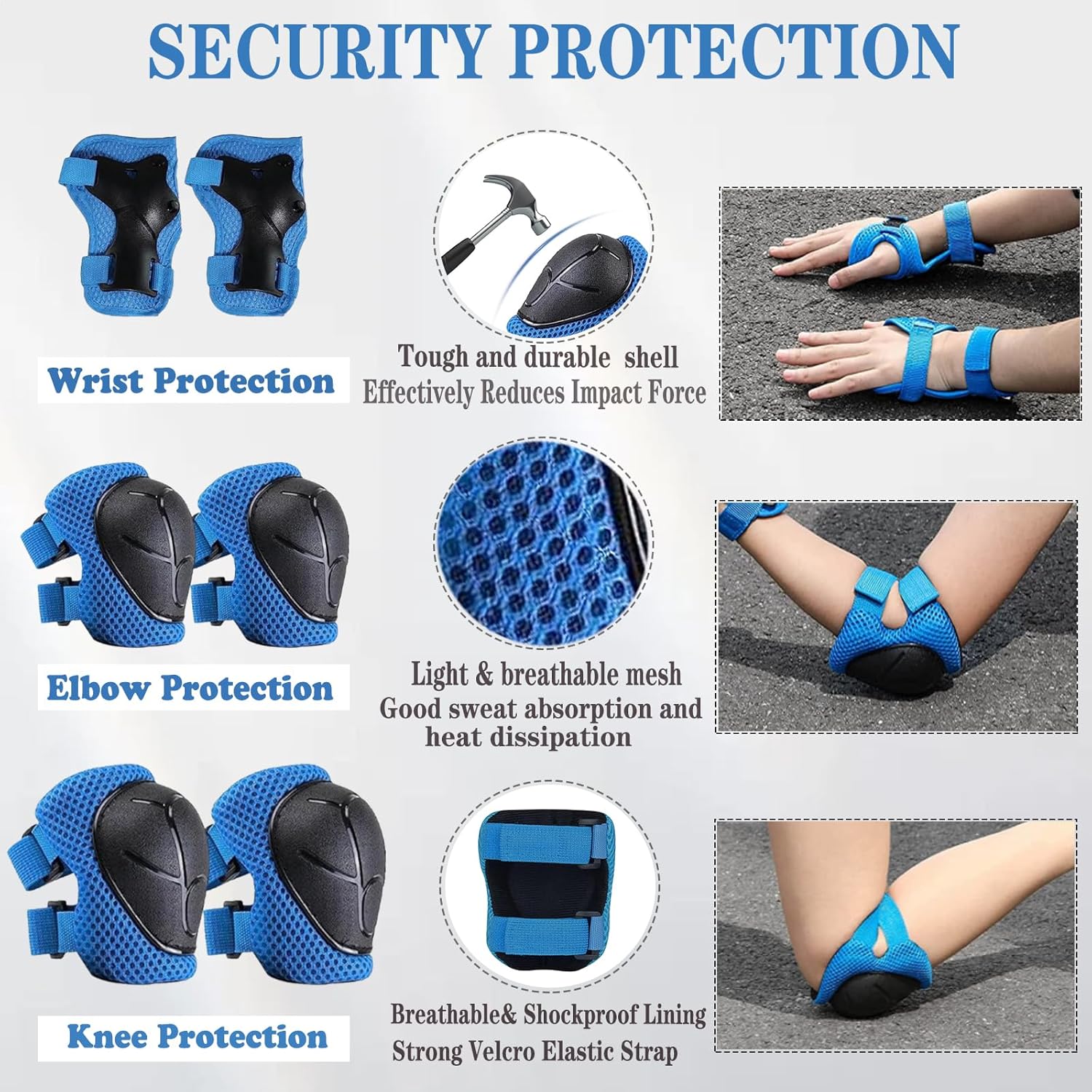 - 【Suitable for Multiple Sports】ours The kids helmet and knee elbow pads with wirst guards are designed for kids sports saftey protection especially for any outdoor activities for many outdoor sports such as skating, skateboard, scooters roller, skating balance bike helmet can provide professional protection to your children, our kids away from hurt when they enjoy the joy of sports.