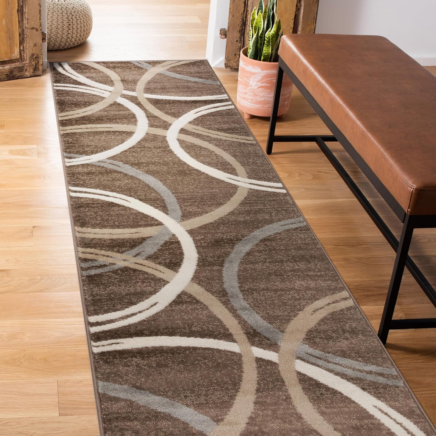 Rugshop Modern Wavy Circles Design Runner Rug 2'7" x 8' Brown