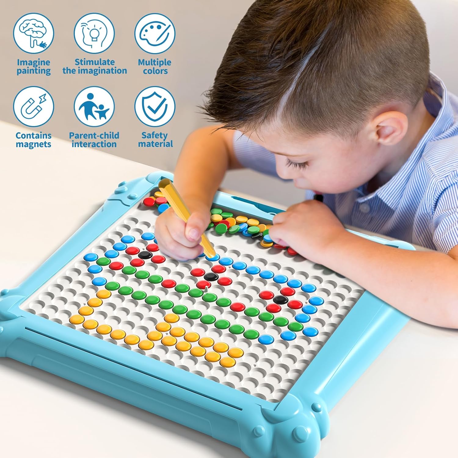 • 【Well Designed Non-toxic】Magnetic drawing board is made of kids friendly ABS plastic material. The rounded corners of the magnetic dots board are smooth to take care of little ones' small hands. All magnetic beans are sealed inside a clear acrylic panel which can effectively avoid the risk of toddlers swallowing. The magnetic pen has just the right magnetic force to pick up 1 magnetic bead, avoiding the situation where the bead cannot be moved or 2 beads are picked up at the same time.
