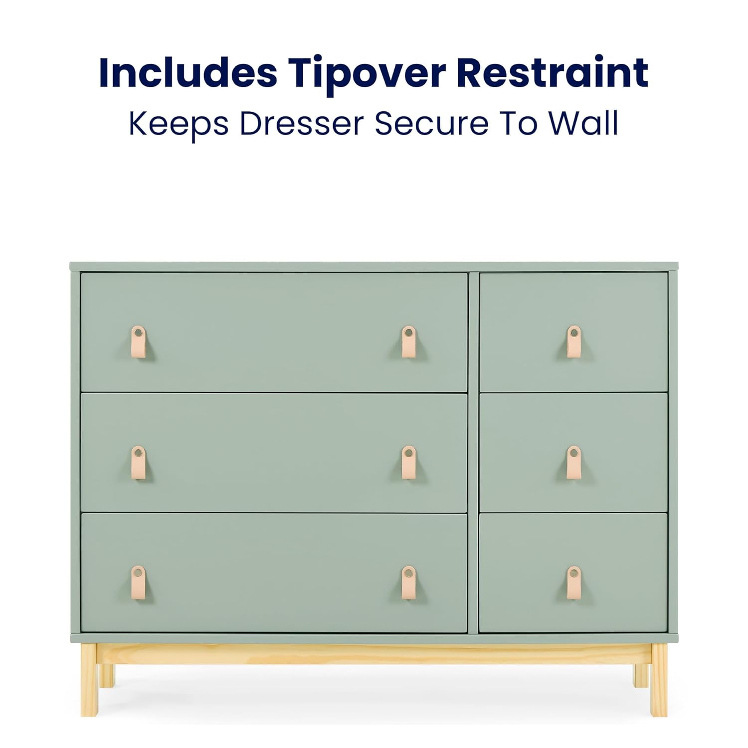 Delta Children babyGap Legacy 6 Drawer Dresser with Leather Pulls and Interlocking Drawers Greenguard Gold Certified, Sage Green w/Natural