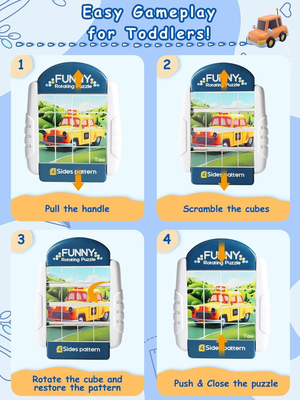 - A HANDY TOY FOR OUTINGS - Whether in the car or at a restaurant, our compact Rotating Puzzles can be carried along and keep children quiet and occupied. Moreover, there is no risk of missing pieces after playing with this all-in-one design puzzle!