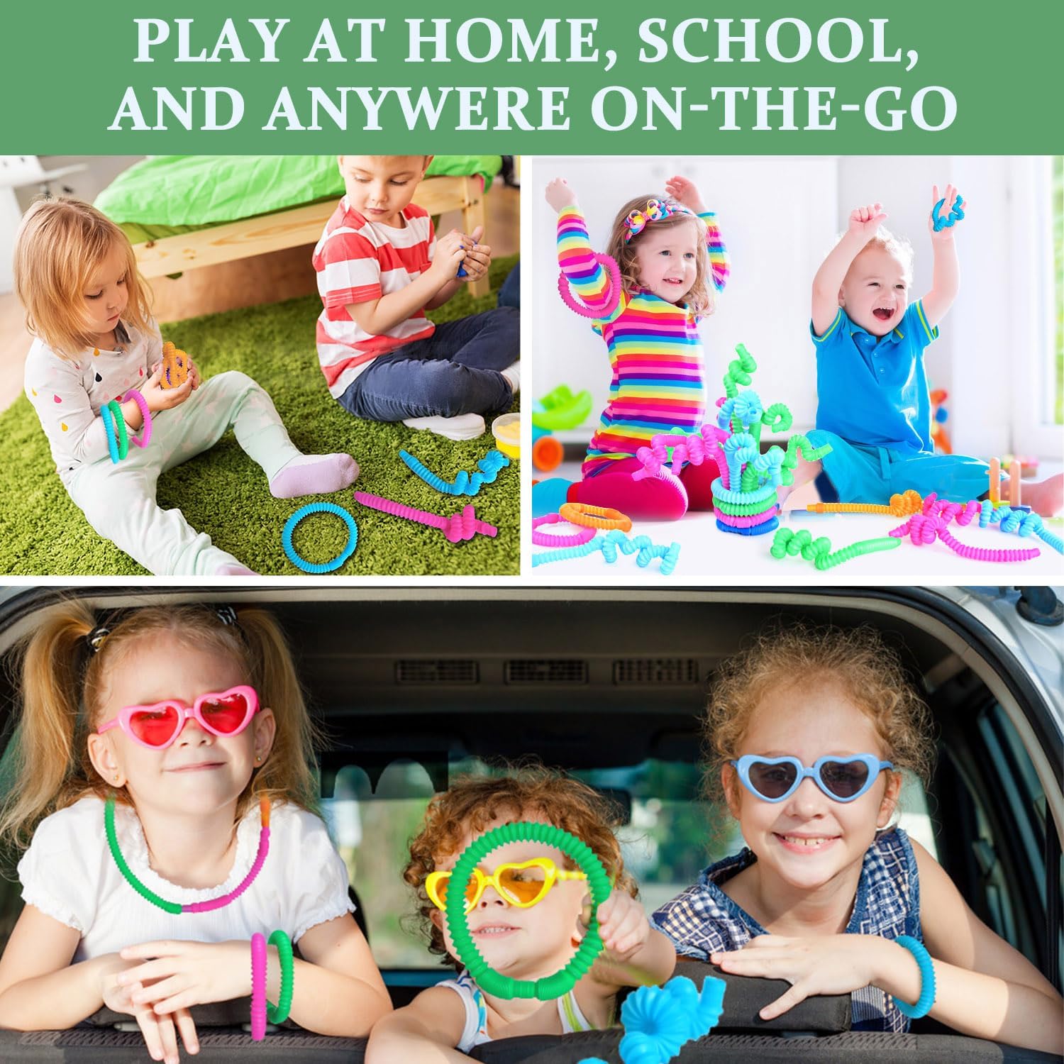 - 【Sensory Toys for Toddlers 1-8 years】Pop Tubes have Multiple game modes By connecting, stretching, rotating, and twisting, one can freely stretch and deform to form different shapes, Can explore more different postures to form bracelets, necklaces, and jump ropes, providing endless hours of fun and creativity.
