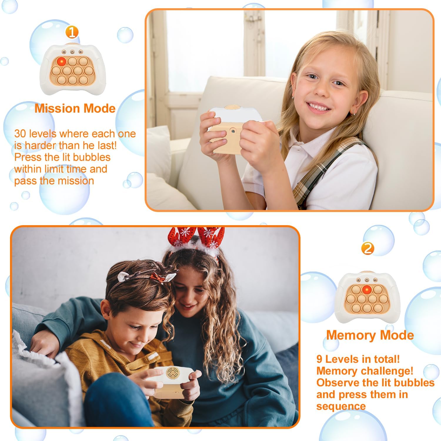 - Fun to Play: Select the modes you want to play then enter the game mode for the puzzle game machine, turn off all the lights by pushing the pop bubble, also there accompanied with customized ticking sound while turning ON/OFF the game machine.