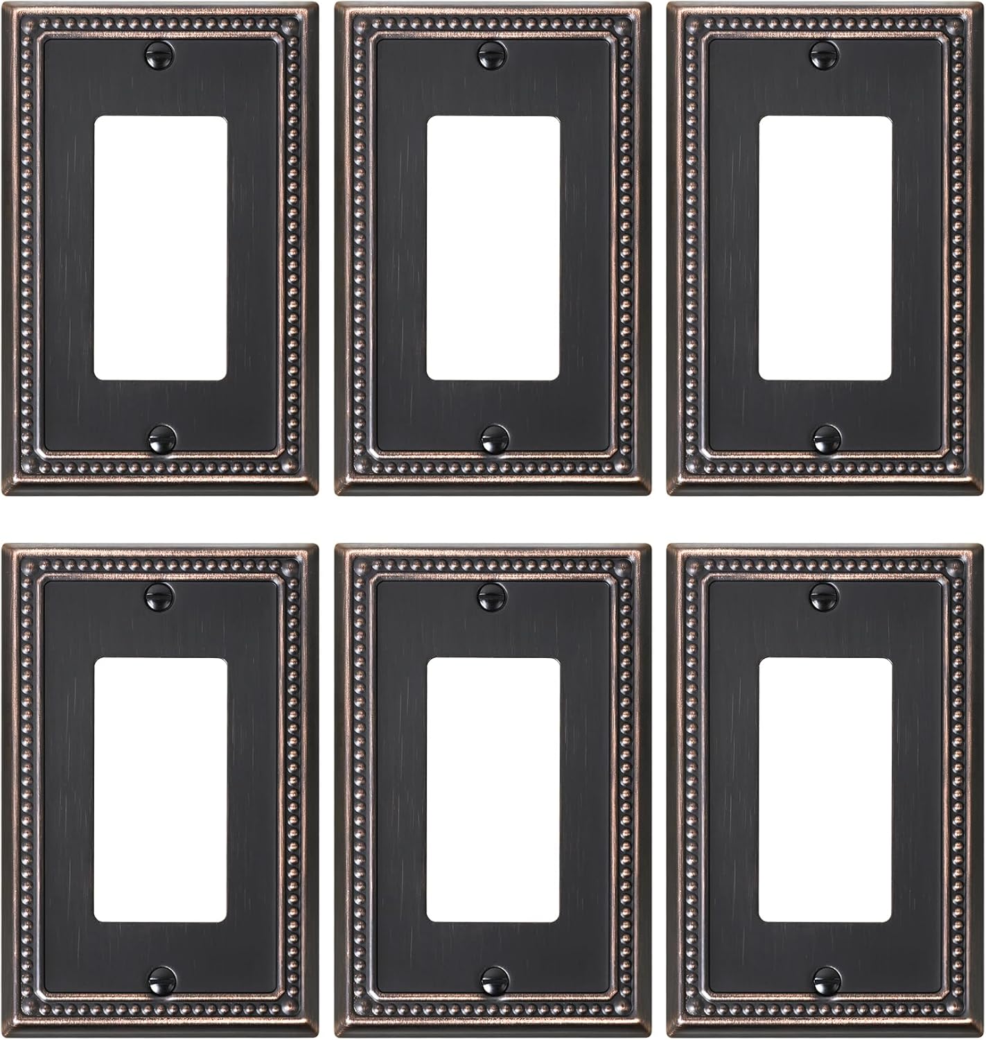 6-Pack Decorator Outlet Cover Plate, Decorative Switch Plates and Outlet Covers, Aged Bronze Metal Wall Plates for Electrical Outlets, Receptacle, GFCI Outlet, Dimmer Switch