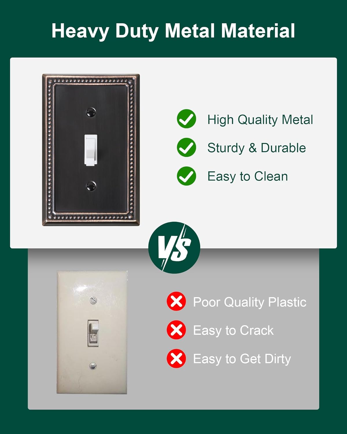 - Durable & Versatile - Constructed from thick and sturdy metal, the light switch cover plate ensures long-lasting durability and sturdiness. It is resistant to high impact, tarnishing, and corrosion, making it not easy to break. Rest assured that this switch plate covers will remain a stunning addition to your home for years to come.