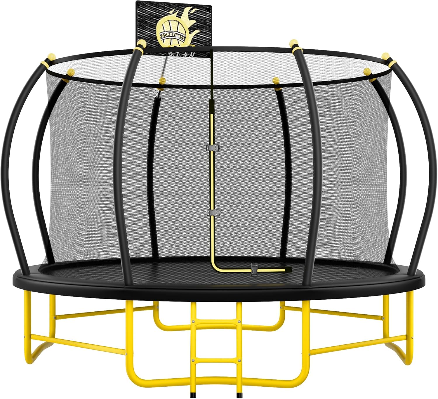 10FT 12FT 14FT 16FT Pumpkin Trampoline for Kids Adults, ASTM Approved Outdoor Recreational Trampoline with Basketball Hoop, Enclosure Net, Yellow